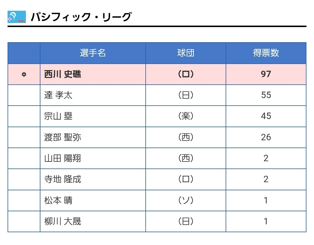 プロ野球担当記者の投票で選ばれた 2025年度の「最優秀選手賞」と 「最優秀新人賞」が発表されました。 ■最優秀選手賞 【セ】佐藤 輝明(T)初受賞 【パ】L.モイネロ(H)初受賞 ■最優秀新人賞 【セ】荘司 宏太(S) 【パ】西川 史礁(M) 【セ・リーグ 新人王 投票結果】 荘司宏太(ヤ)