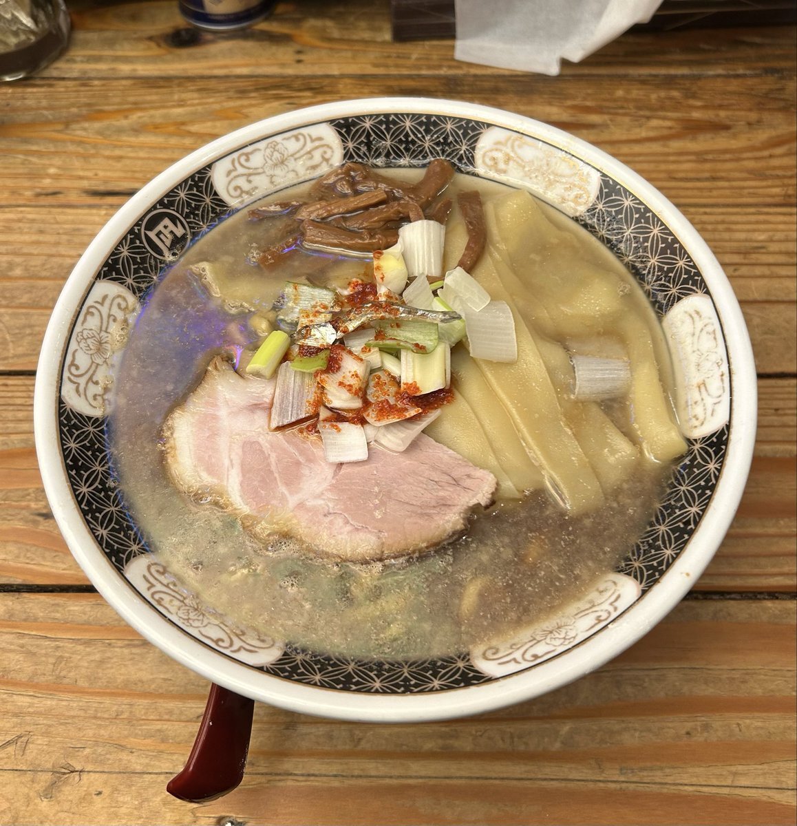 すごい煮干ラーメン凪 新宿ゴールデン街店本館 【すごい煮干しラーメン】 📍新宿区歌舞伎町 言わずと知れた煮干しの名店 立ち上がる香りと鋭い旨味がしっかり主張するスープに、ワシッとした平打ち麺がよく絡む 濃厚なのに重さはなく、煮干しの魅力をまっすぐ楽しめる一杯です🍜✨ pic.x.com/canLDDphl0