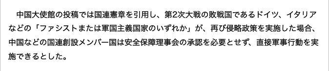 【日本に軍事行動可能と中国大使館】 news.yahoo.co.jp/pickup/6559904