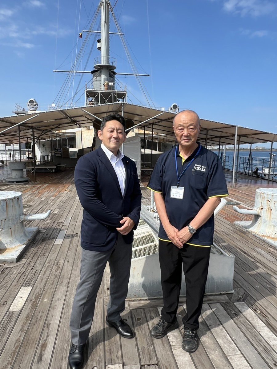 【横須賀・戦艦三笠】 記念艦三笠の視察をしてまいりました。 戦艦三笠といえば日本海海戦。連合艦隊司令長官 東郷平八郎大将の「敵前大回頭と丁字戦法」による完全勝利は世界各国に衝撃を与えました。 本日は「三笠保存会」三輪 pic.x.com/b1L7FEvSMe