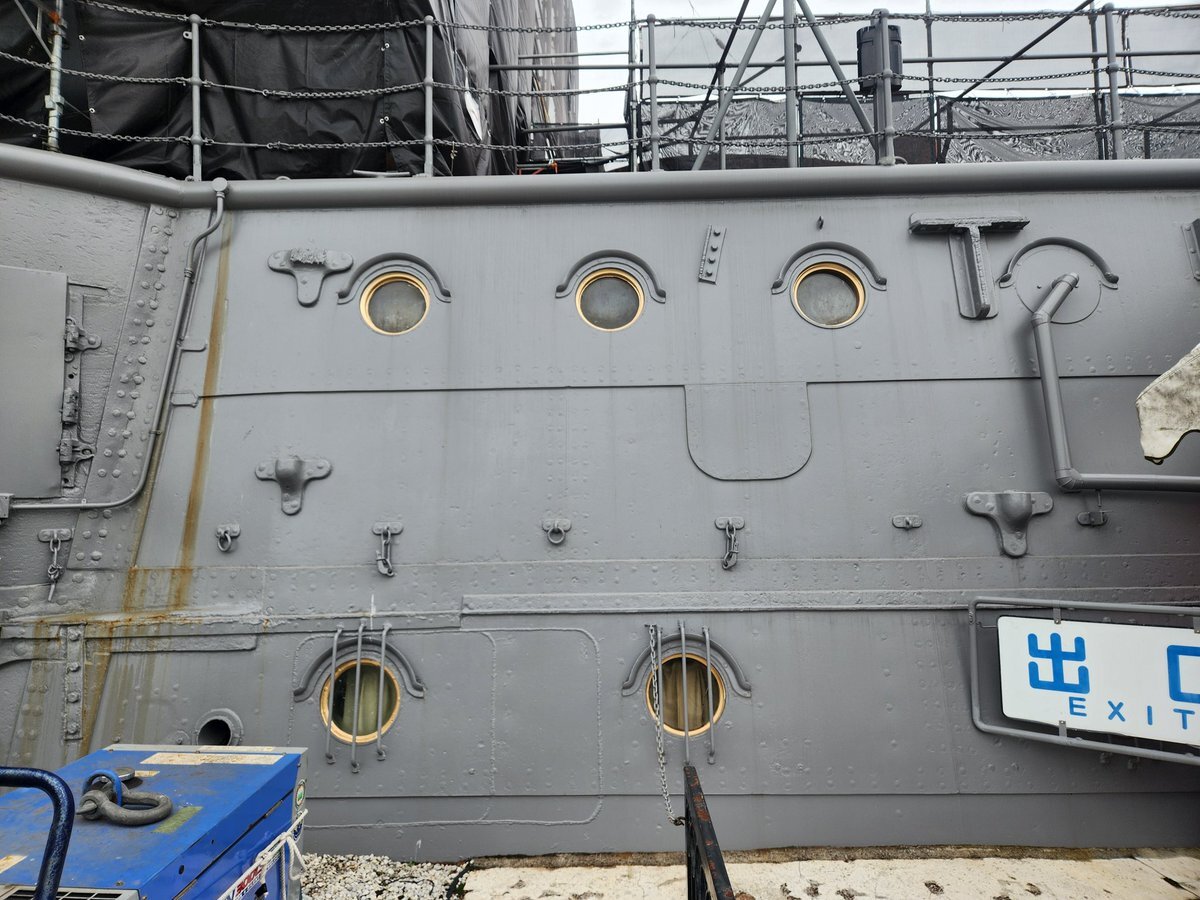まずは三笠公園から! 戦艦三笠を見ずして横須賀に来たとは言えない。東郷平八郎像を前にしばし当時に思いを馳せる。 舷窓いっぱい! 日本海海戦で相対したバルチック艦隊の艦影もきっとこの窓の一つ一つから見ていたのだ。 そして勝手に親近感を覚える🫠ウレシイ pic.x.com/kzDumNa9TY
