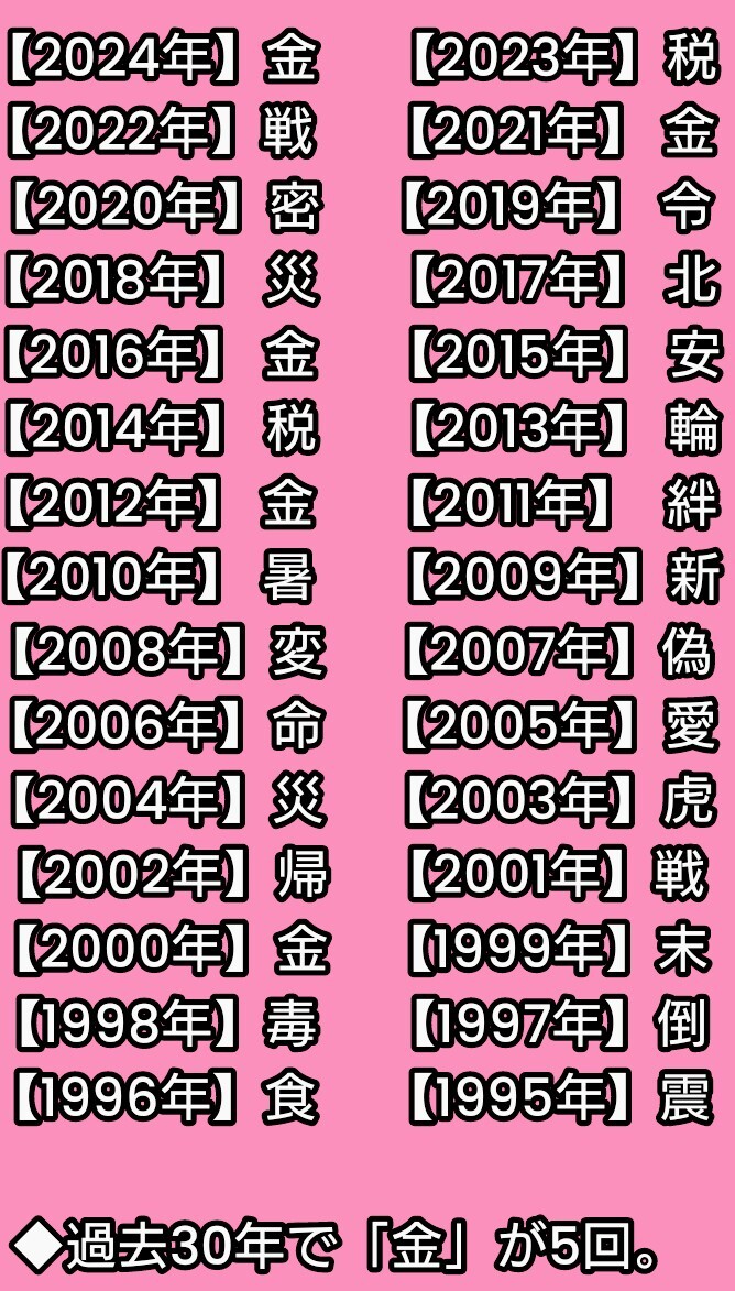 ☕『社会科カフェ』リアルつぶやき☕ 〈今年の漢字 過去30年分〉 公益財団法人 日本漢字能力検定協会が主催する「今年の漢字®」 みなさんは、「今年の漢字」は何だと思いますか? ※1995年〜2024年までの「今年の漢字」一覧です✏️ ぜひご覧ください! ------------------------- 【参考サイト】 pic.x.com/2Zr8iR1uP5 x.com/SHAKAIKA_CAFE/…