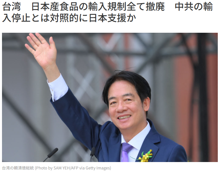 台湾 日本産食品の輸入規制全て撤廃 中共の輸入停止とは対照的に日本支援か 台湾当局は21日、東京電力福島第1原発事故以降に導入した日本産食品の輸入規制をすべて撤廃すると発表した。中国共産党政権が日本産水産物の輸入を停止する中、台湾の頼清徳政権は日本への支援 epochtimes.jp/share/333280?u…