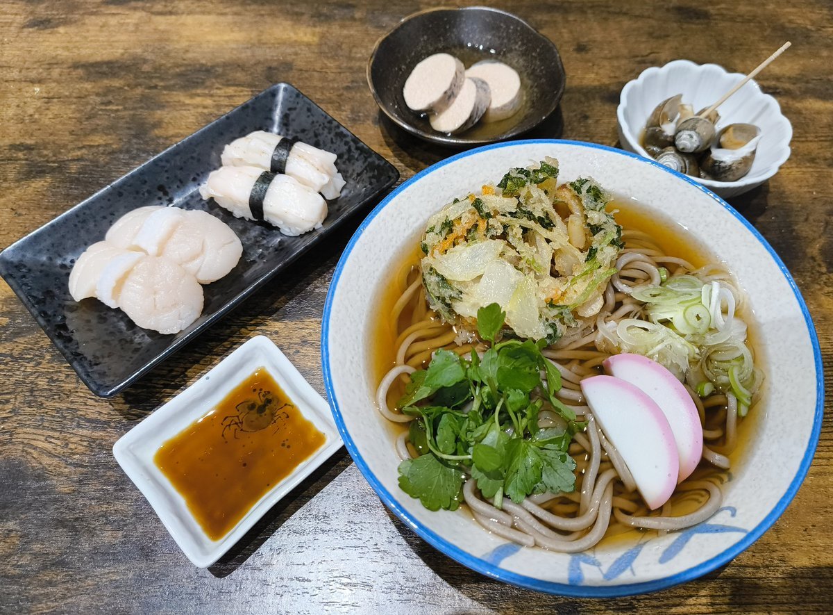 受信料なんか気にせずに美味しい晩ご飯! ホタテの握り、ホタテ入りかき揚げそば。 中国が日本産水産物の輸入を停止しましたが、あまり影響が無いみたいです。 ホタテをなめるなよ! 秋田ではホタテはとれませんが、日本の安心・安全で美味しいホタテを食べます。皆さまもウマイ日本の水産物をぜひ! pic.x.com/S7m6bvaxZs