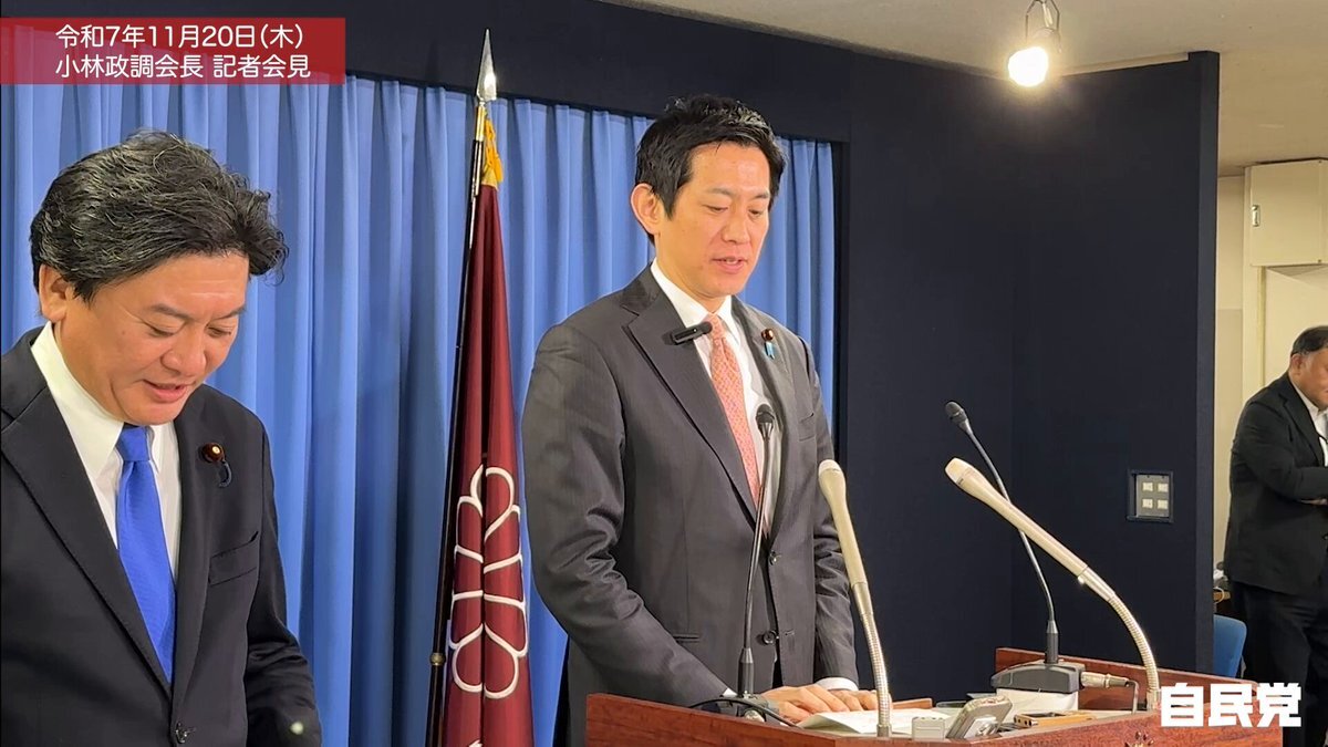 小林鷹之政調会長 定例会見  ̄ ̄ ̄ ̄ ̄ ̄ ̄ ̄ ̄ ̄ ̄ ̄ ̄ ̄ 【冒頭発言】 皆さん、おはようございます。 今日もお集まりいただきましてありがとうございます。