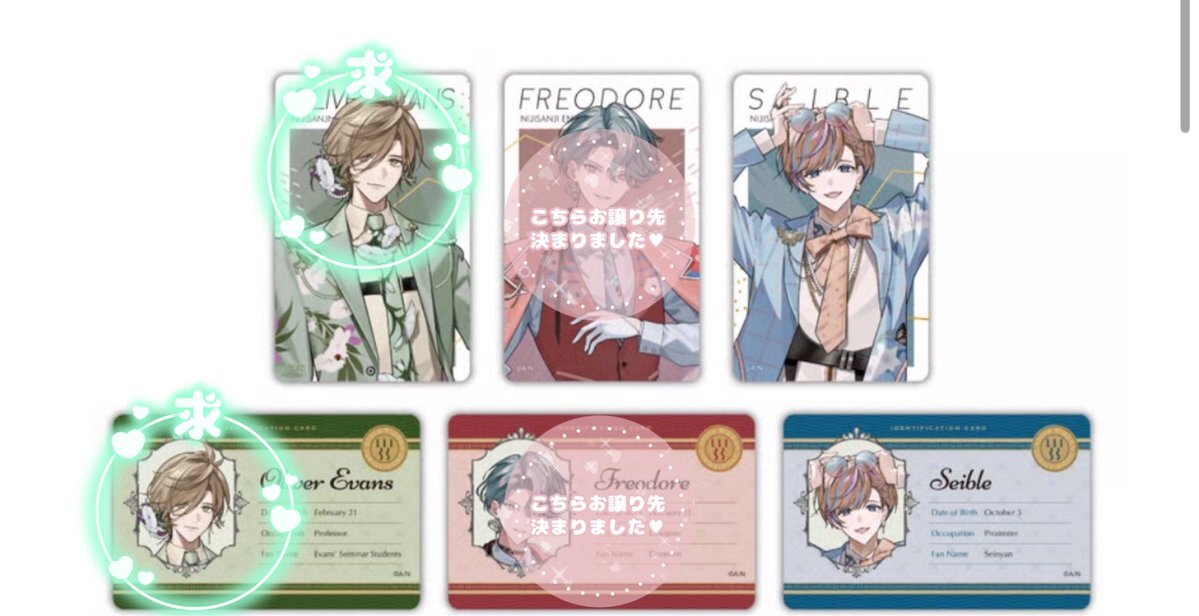 【交換/譲渡】にじさんじ 日本百貨店 にじ日本百貨店 譲:画像👑 求:定価+送料 または固定の異種 通販にて缶バッジ1セット/クリアカード10枚購入予定 譲渡は缶バッジ1+クリカ排出分すべてお迎えいただける方 お気軽にお声掛けください🌸 pic.x.com/Snchz2ewYQ
