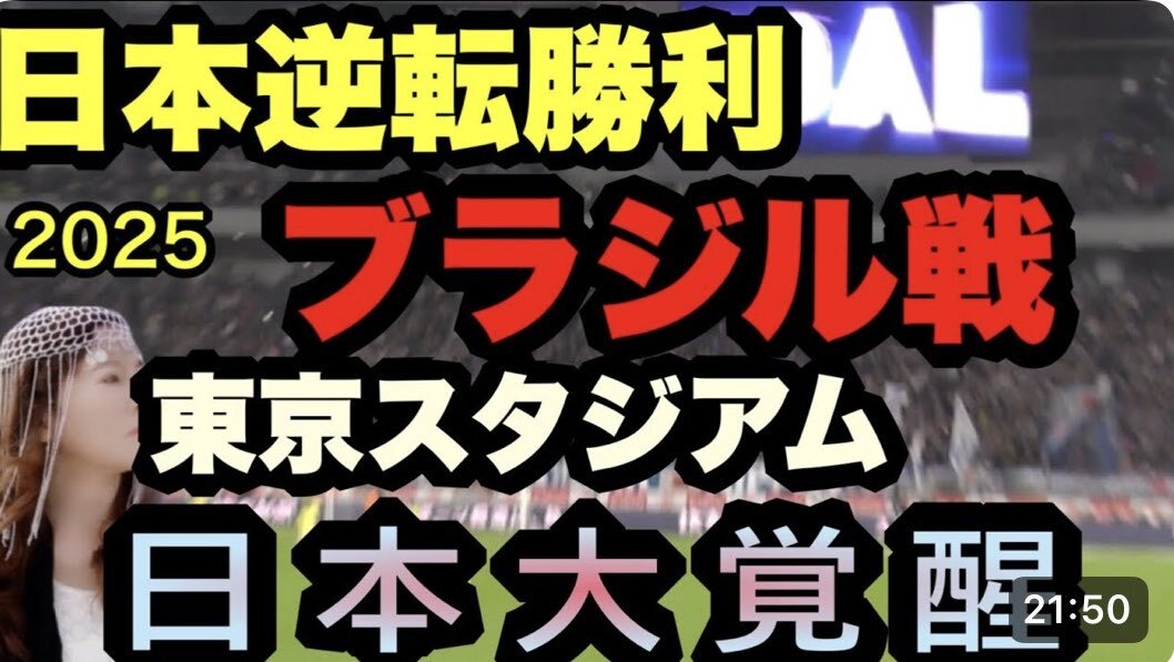 最新です😊 先ほどのはミスでした😱 【サッカー】日本逆転勝利 ブラジル戦 東京スタジアム 日本大覚醒 日本代表 youtu.be/VrbNy7twbm0?si… pic.x.com/ClmKQxfEHn
