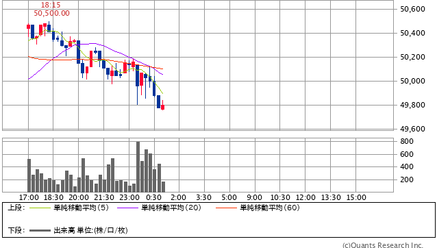 日経平均 50,276.37 -607.31 日経平均先物 50,310 -550 TOPIX 3,298.85 -14.60 グロース250 700.84 -2.22 出来高 25億5,210万株 売買代金 6兆9,948.01億円 5日騰落レシオ 119.45% 25日騰落レシオ 111.88% 値上がり 874 値下がり 682 変わらず 58