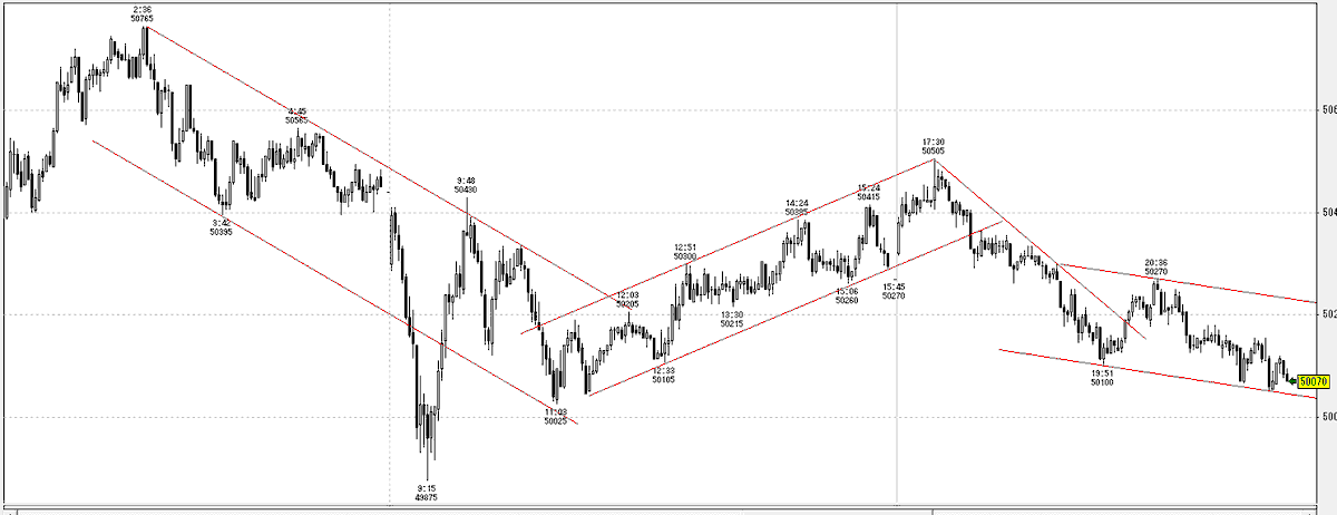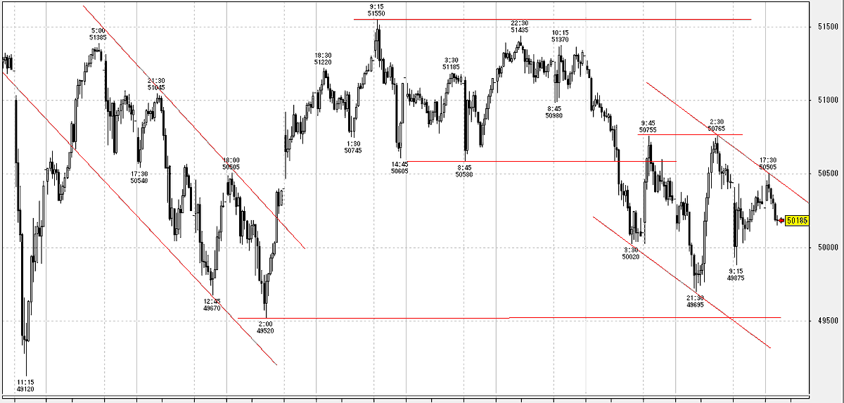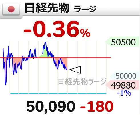 いゃぁ、日経平均株価、上がらなかった。予想外れだった。5万円台を割り込むとは思わなかったが、5万円割り込んでから反発しているところを見ると、5万円は比較的手が出しやすいという雰囲気はあると見た。明日がどうなるか?5万円2千円が遠く感じる。