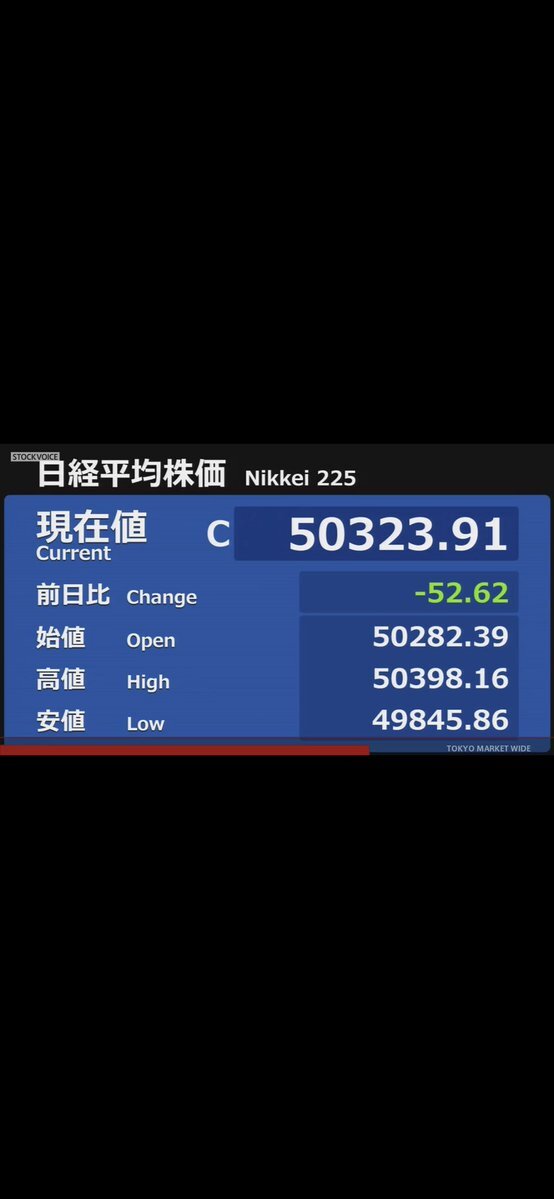 ▫️17日🇯🇵市場 🟢日経平均株価 5万0323円91銭(52円62銭📉) 🔴TOPIX 3347.53(0.37%📉) 下落トレンド継続中💀引けでマシにはなりましたがNVIDIA決算待ちかな🤔台湾発言での日中関係悪化で百貨店などのインバウンド株が📉 プライム市場:📈618銘柄・📉932銘柄 j.jp.moomoo.com/00WUqm #moomoo証券 #投資 pic.x.com/nv53cUwZ8U