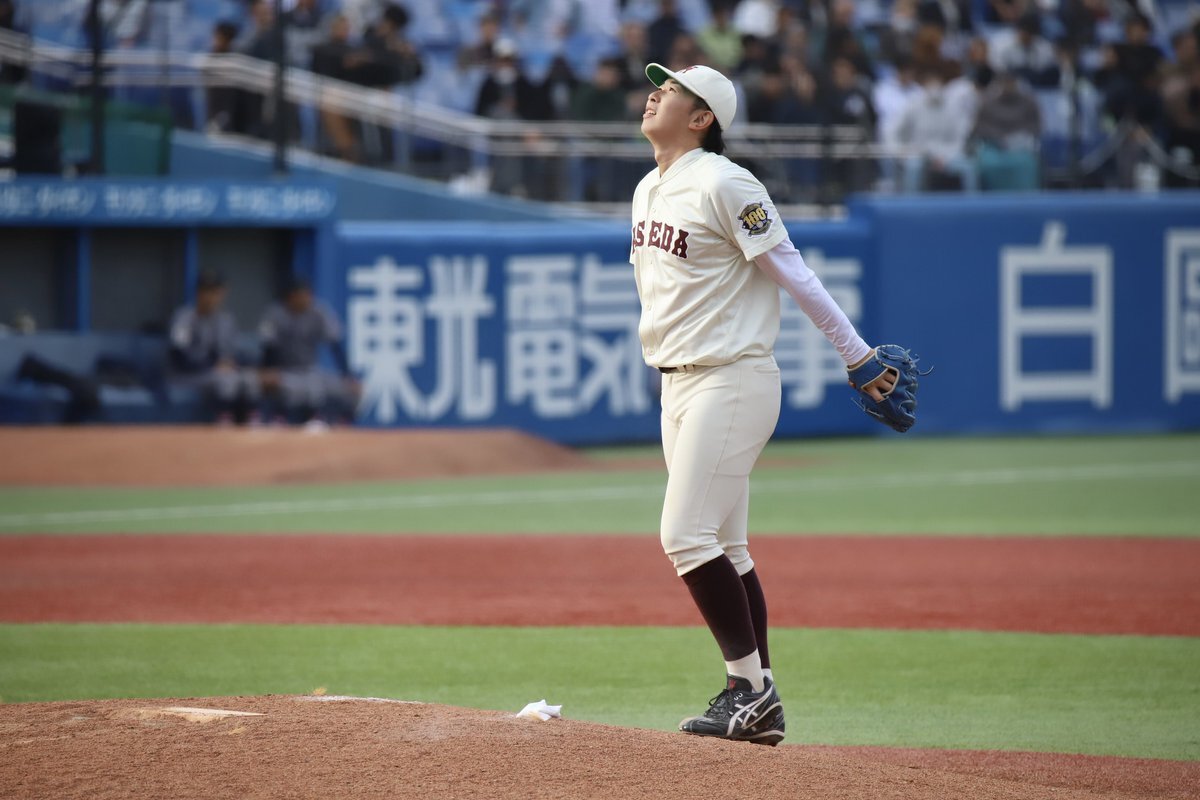 #髙橋煌稀 #早稲田大学野球部 2025.11.2 今2年生で伊藤樹くんの後輩(仙台育英)にあたりますね。いい投げっぷりでした。 pic.x.com/hoTVxDrehE