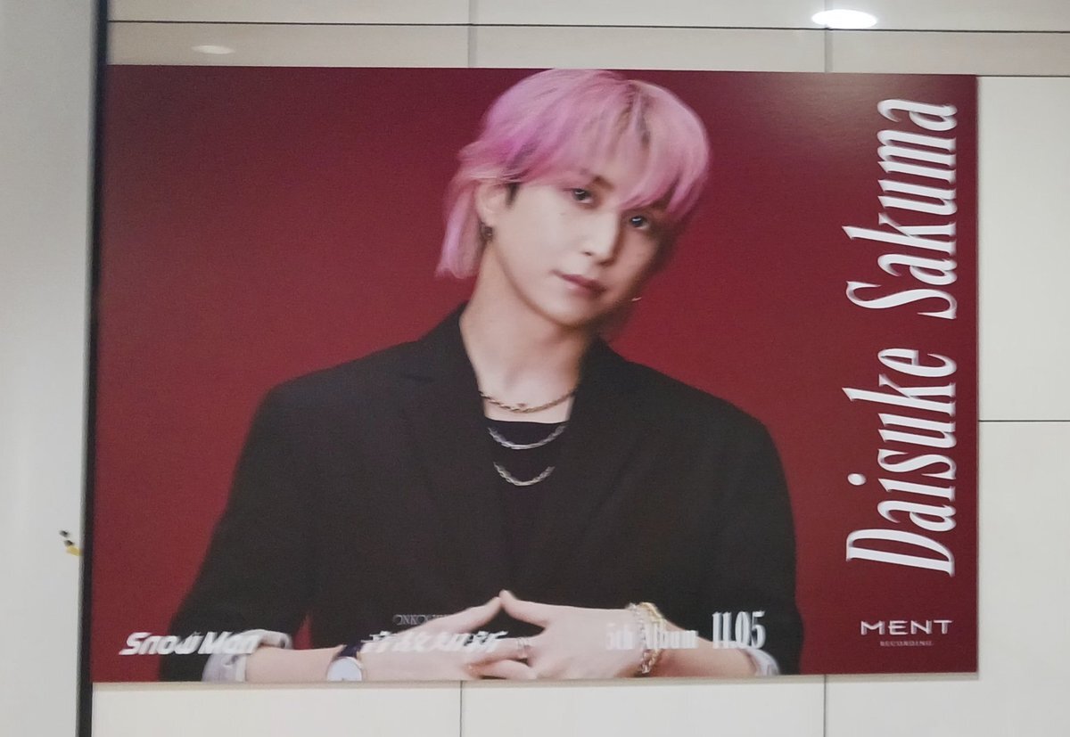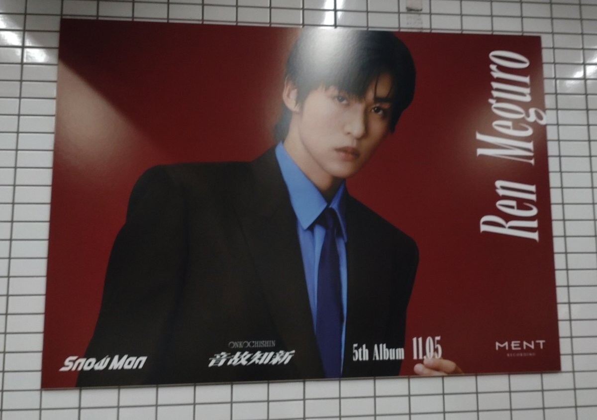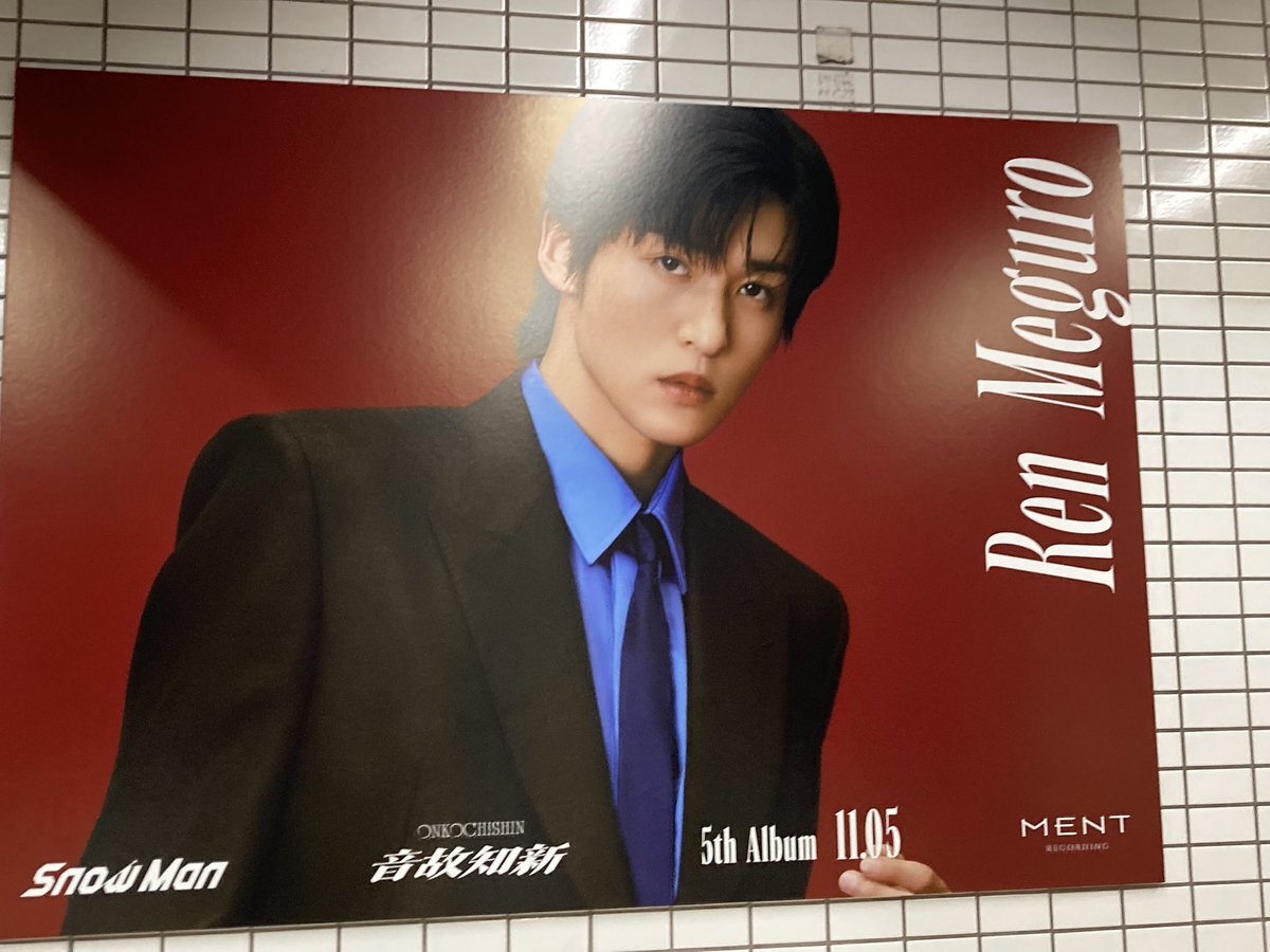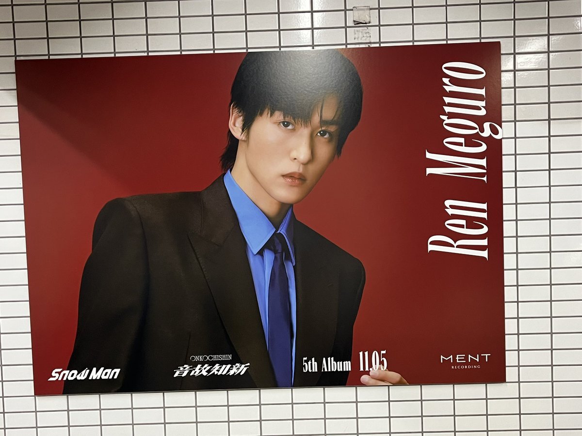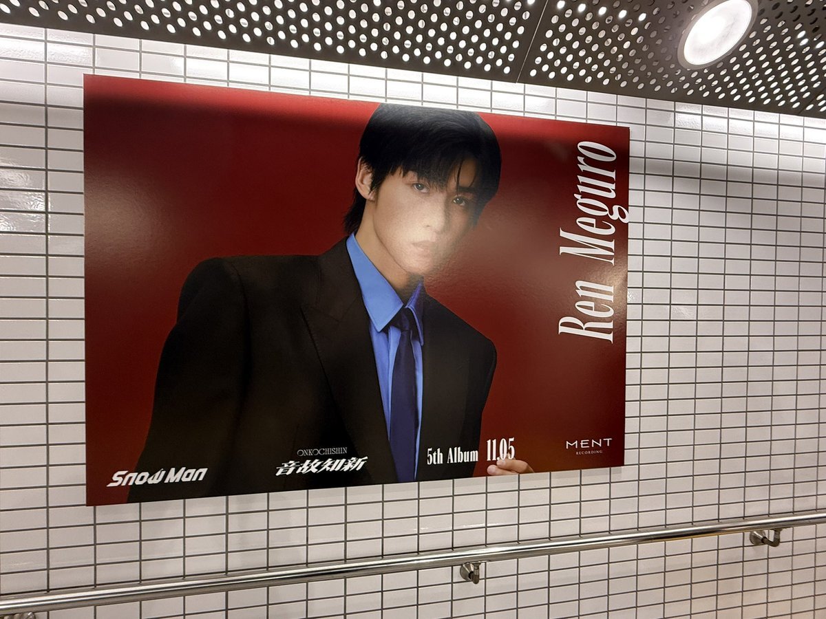 人通り多くて撮れなかったけど、明治神宮前駅の副都心線から千代田線乗り換えの上りエスカレーターの所に目黒蓮くんのポスターがポツンとあった。 SnowManの音故知新のポスターみたいだけど色んな所に貼られてるのかな。あそこ見つけるの結構難しくない?