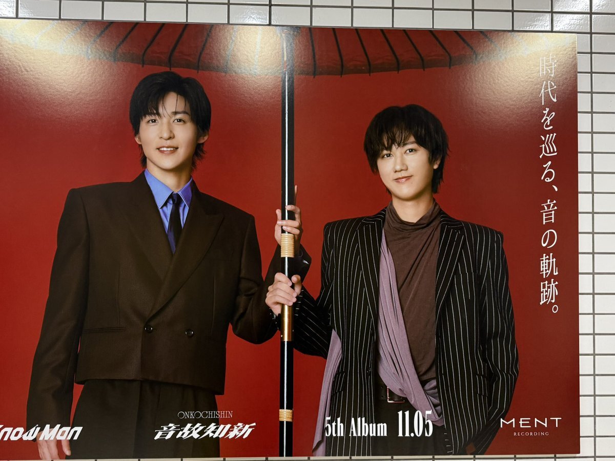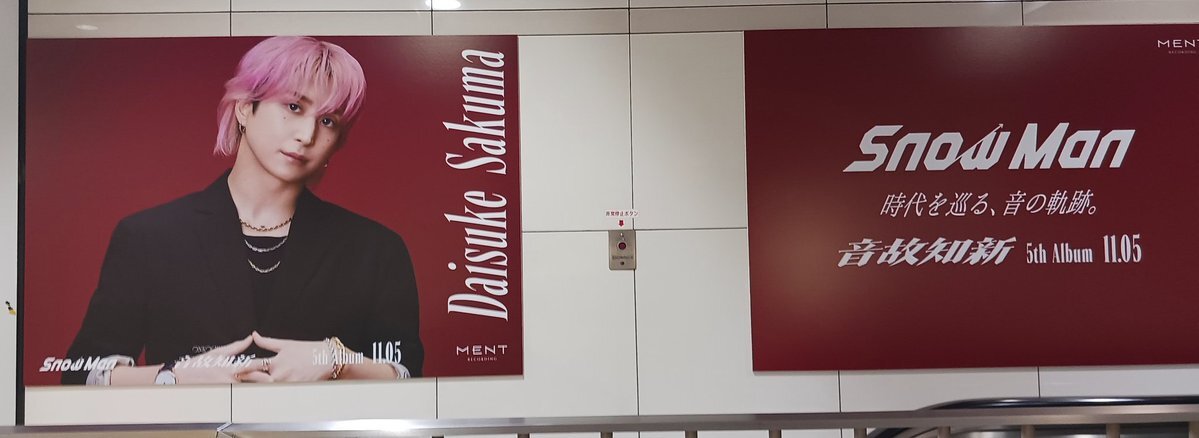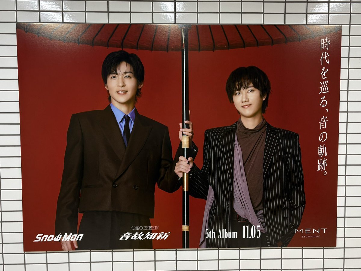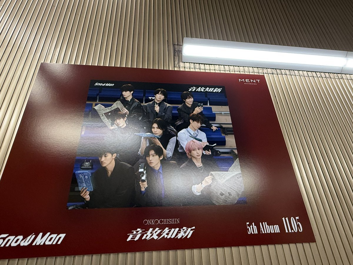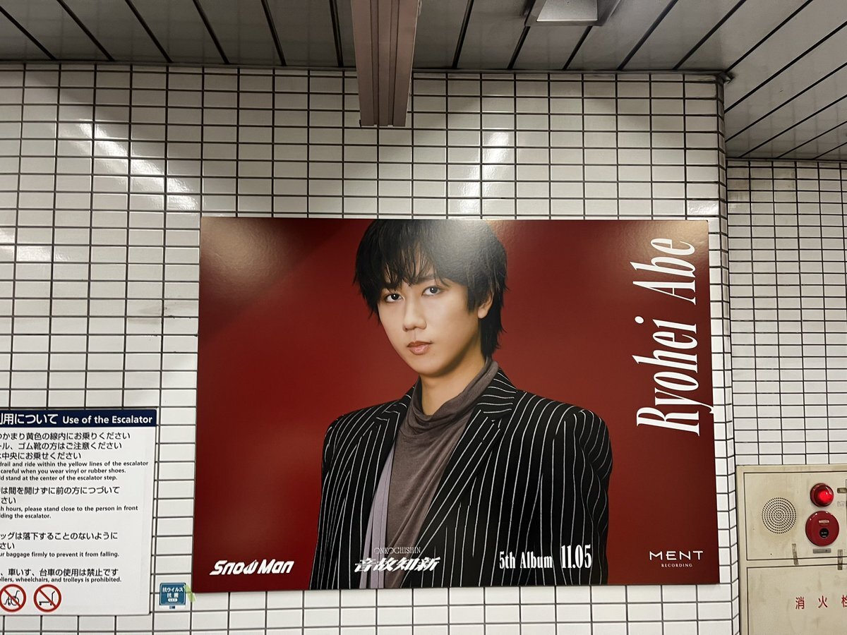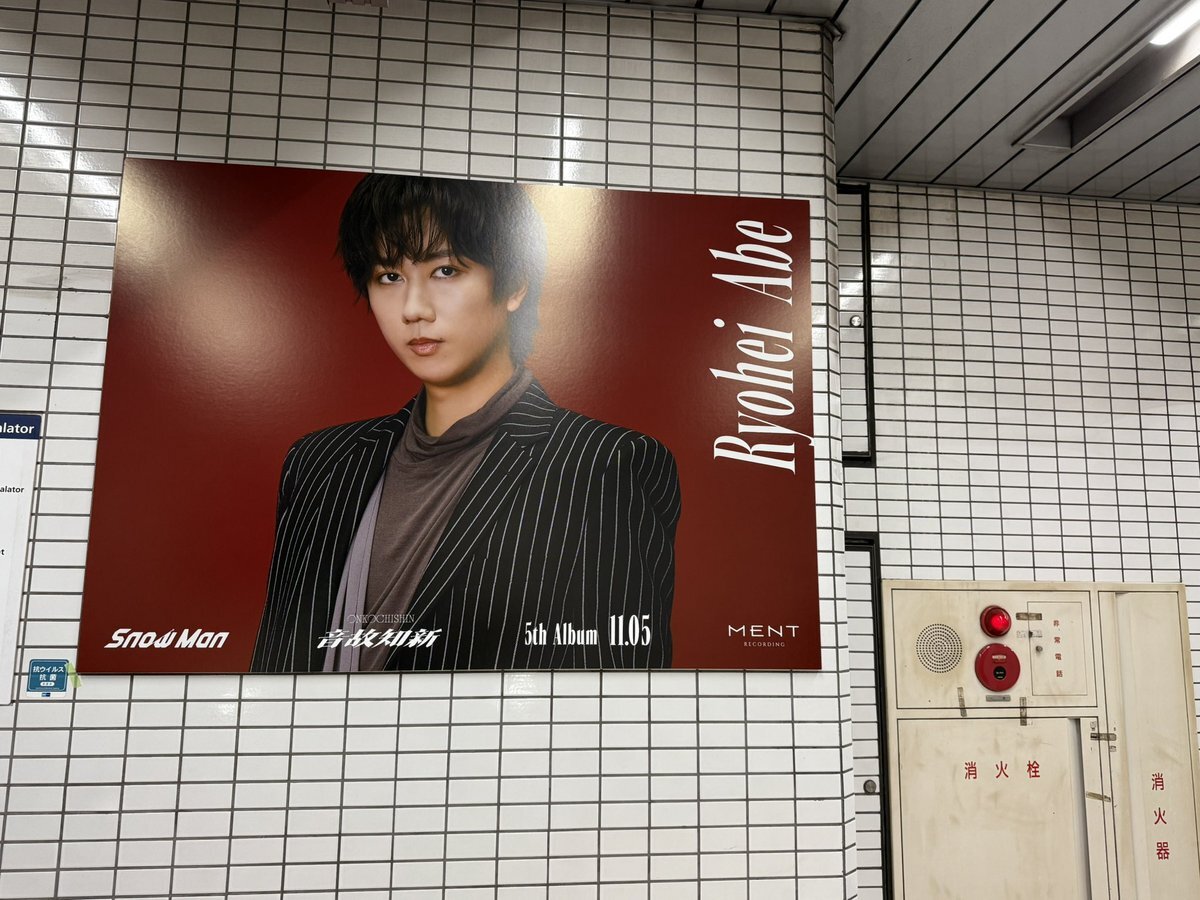 東京🗼にきてます 千代田線明治神宮前駅で降りて副都心線に乗り換えしようと階段降りたらめめ🖤と阿部ちゃん💚ホームに降りるところにひーくん💛と康二くん🧡いました #音故知新 発売日のポスターもありました 阿部ちゃんは人が沢山通って撮影できなくて残念😢 #SnowMan pic.x.com/BPYpEMZDSG