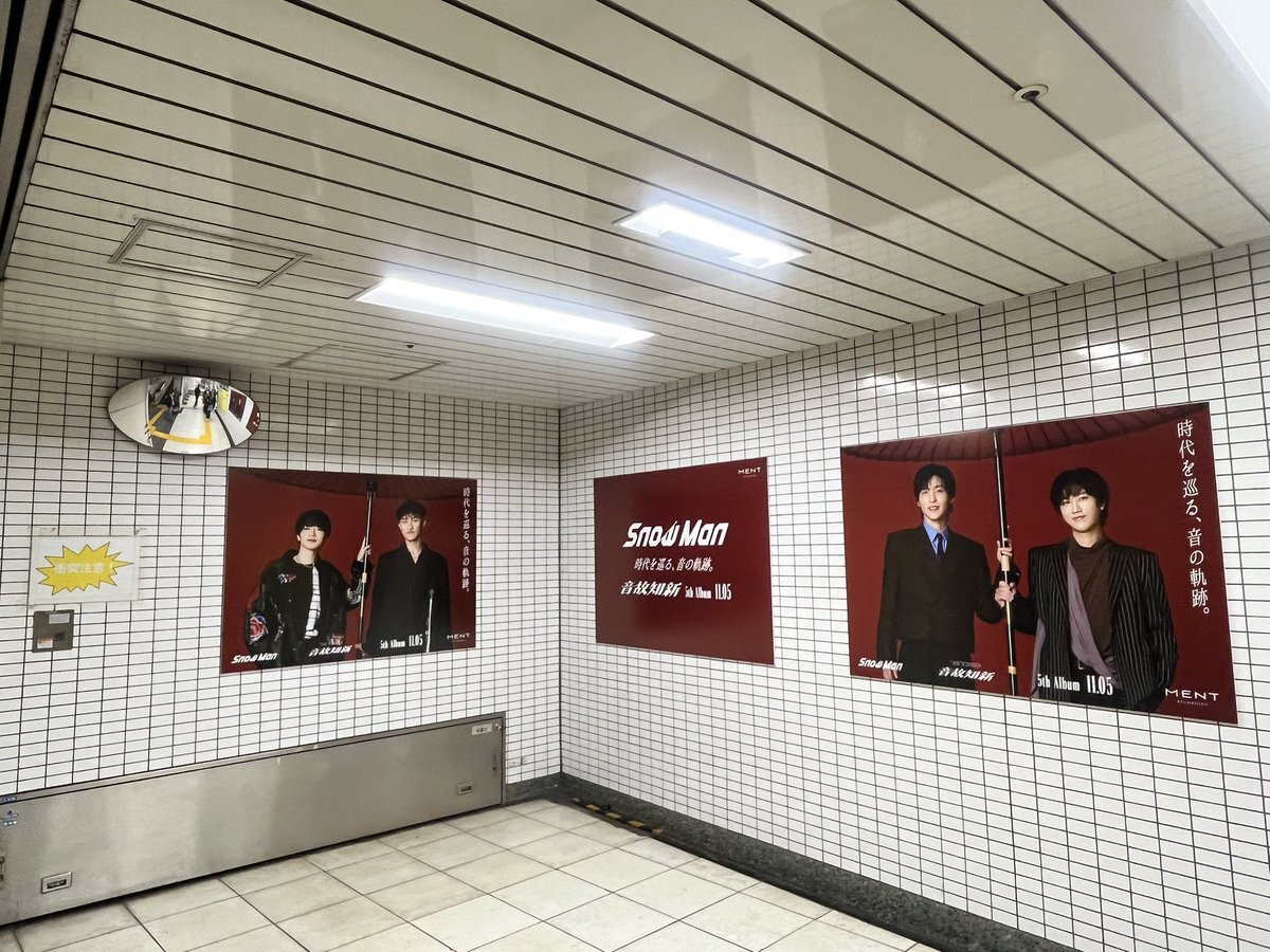 Snow Man 音故知新 明治神宮前駅 広告ジャック 改札内 千代田線 2号車前階段 阿部佐久間 6号車付近階段向井集合通常盤バージョン 9号車付近 副都心線乗り換え階段 目黒 阿部(多分1番撮るのしんどい) 10号車付近 宮舘深澤 副都心線 8号車付近集合A B 4号車 岩本 向井 2 号車 渡辺佐久間 リプに改札外