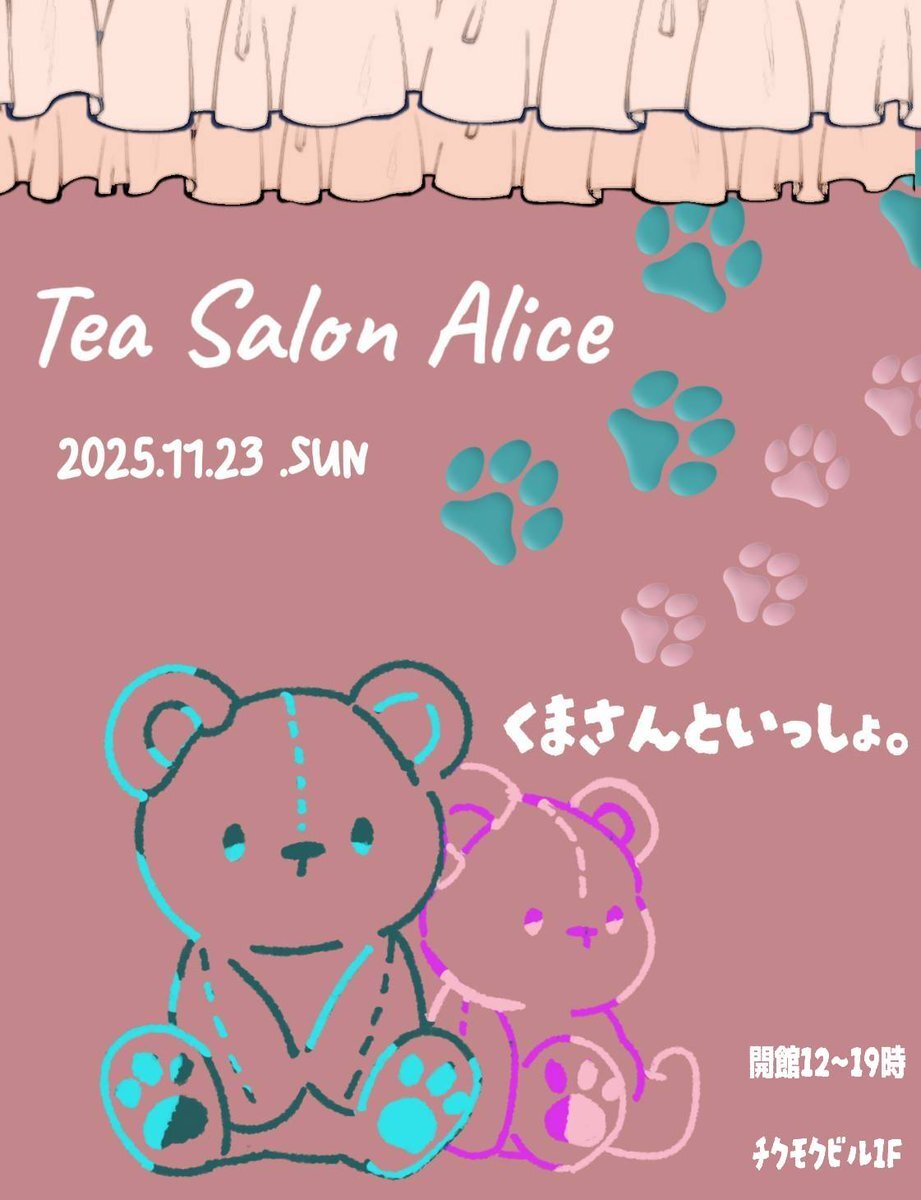 お待たせいたしました、11月23日の #TeaSalonALICE 開館情報です🧸🤍