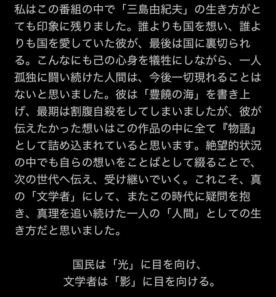 録画していたNHK 「映像の世紀 バタフライエフェクト 昭和の文豪たち」 私は読書家じゃないので、作家も作品もあまり知らないけど やっぱりいちばん興味ある人は…三島由紀夫やな 二十歳の時に遺書を書いてたのね🥺 映画の「MISIMA」 一般公開してくれないかなぁ 大好きな緒形拳さんやし