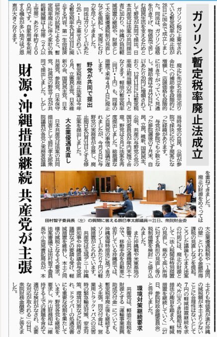 ガソリン暫定税率廃止法成立/財源・沖縄措置継続 共産党が主張|しんぶん赤旗|日本共産党 jcp.or.jp/akahata/aik25/…
