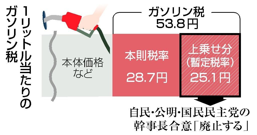 野党7党共同で提出の暫定税率廃止法案(軽油は対象外)が常会で廃案、その後8月の臨時会にも同様の法案が複数の野党から共同で提出されたらしいがどうなったのかよくわからじ。先月からの臨時会で与野党6党合意の時点では軽油も含む?