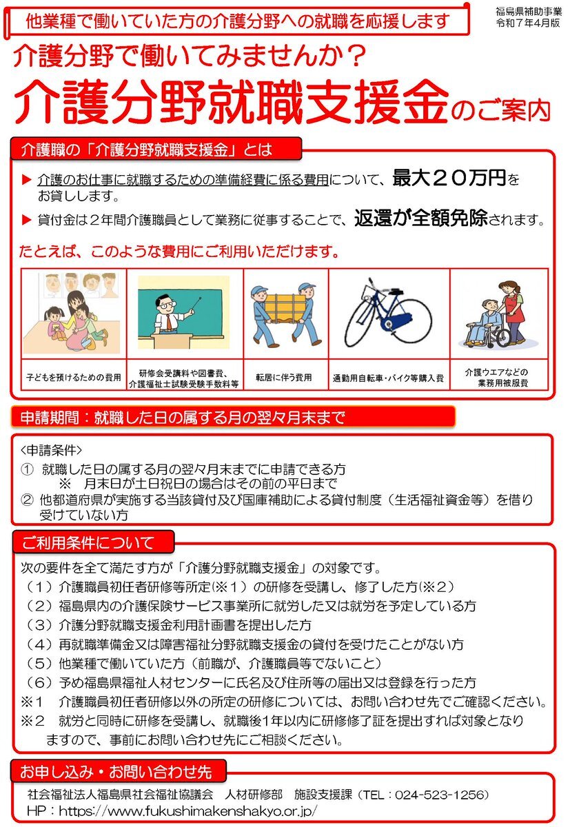 ◇介護分野就職支援金のご案内◇ 他業種から介護職へ転職した方、転職を検討している方へ📢 介護職への準備費用として最大20万円を無利子でお貸しします。 また、2年間勤務すれば返済免除となります。 ぜひ、ご活用ください! 詳細はコチラ▶fukushimakenshakyo.or.jp/pages/127/ pic.x.com/fdodEnkpqd