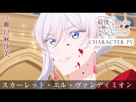 「最後にひとつだけお願いしてもよろしいでしょうか」キャラPV<スカーレット・エル・ヴァンディミオン>CV 瀬戸麻沙美 youtu.be/3u56XO-WO0o?si… @YouTubeより #さいひと #スカーレット・エル・ヴァンディミオン