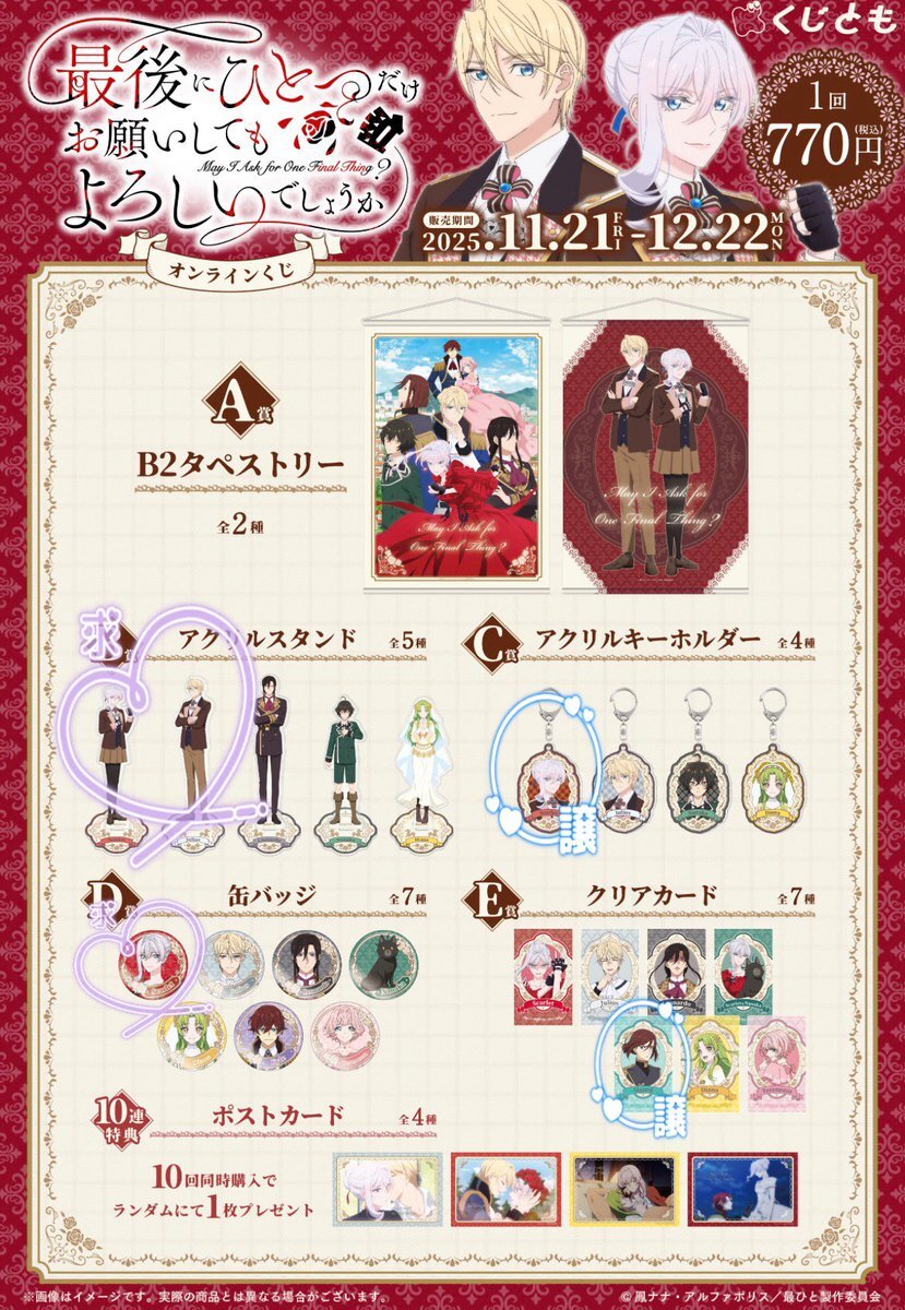 TVアニメ『最後にひとつだけお願いしてもよろしいでしょうか』グッズ 🌹 スカーレット 🌹 ジュリアス 🌹 ナナカ それぞれの「アクリルスタンド」など COSPA(コスパ)通販ほかにて予約受付中✨ cospa.com/cospa/itemlist… #最後にひとつだけお願いしてもよろしいでしょうか #さいひと #MayIAsk pic.x.com/mCr82Uprg2