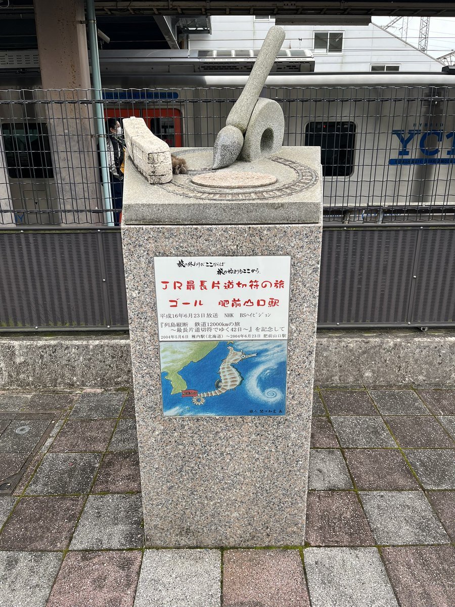 こうほk…いや、肥前山口で下車 「旅情」の石碑、そしてNHK最長片道切符の旅の記念碑が有名ですね。保育園の頃、毎日観ていて自分を乗り鉄の世界へと誘った番組の聖地をようやく訪ねることができました pic.x.com/gKDq0vdrXz
