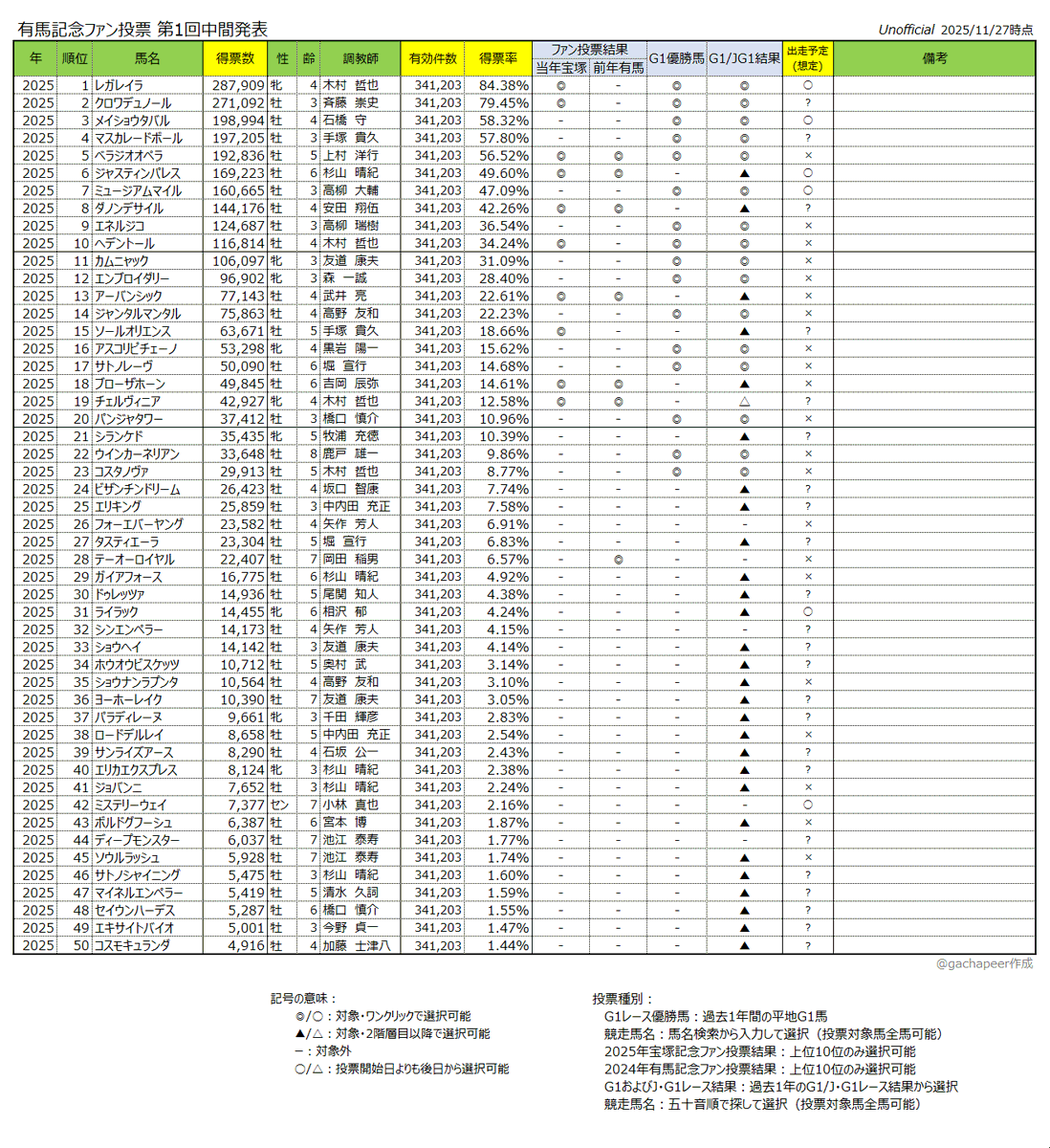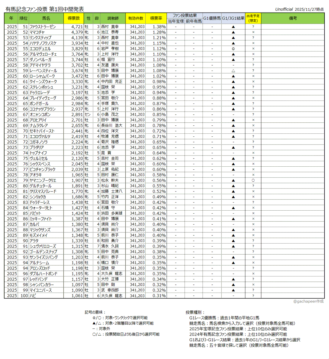 有馬記念ファン投票 第1回中間発表!気になる1位は? #有馬記念 #有馬記念ファン投票 jra.go.jp/news/202511/11… jra.go.jp/news/202511/pd…