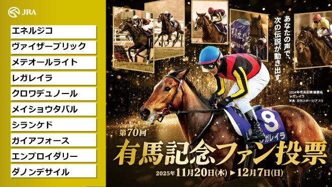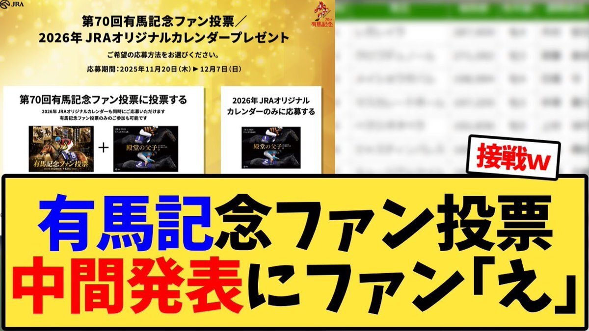 有馬記念ファン投票 第1回中間発表!気になる1位は? JRA あれ意外にロイヤルファミリー戦える? レガレイラがクッソ強敵だけど #ロイヤルファミリー jra.go.jp/news/202511/11…