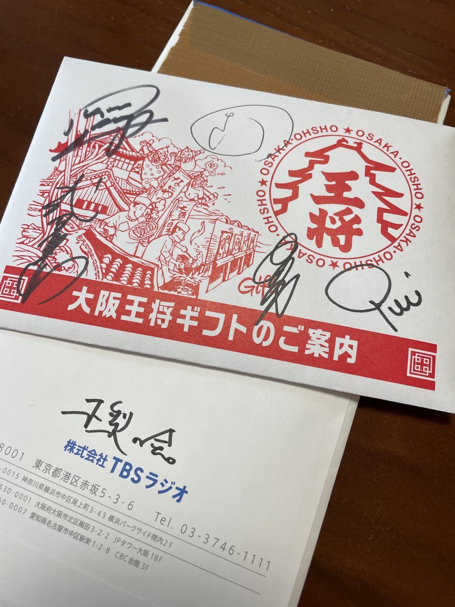 / 🥟大阪王将ギフト🥟 (みんなのサイン入り) 🎉5名にプレゼント😋 \ ✨件名に「大阪王将」と書いて kinashi@tbs.co.jp まで📩 「住所・名前・電話番号」お忘れなく! ✨締切:9/26中! #木梨の会 #武田真治