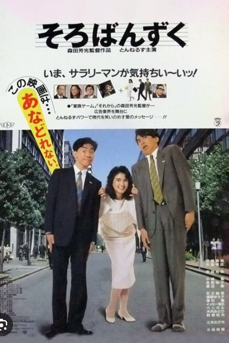 (TSUTAYA)  広告代理店を舞台に、クライアント獲得に狂騒する広告マンの悲哀をエネルギッシュに描いた森田監督の異色コメディ。主役はとんねるずの2人。彼らのライバル会社のエリート社員・桜宮天神に小林薫。この3人の間で揺れる女として安田成美木梨憲武安田成美が出会い、結婚に至っている。 pic.x.com/TJuWz4zGYQ