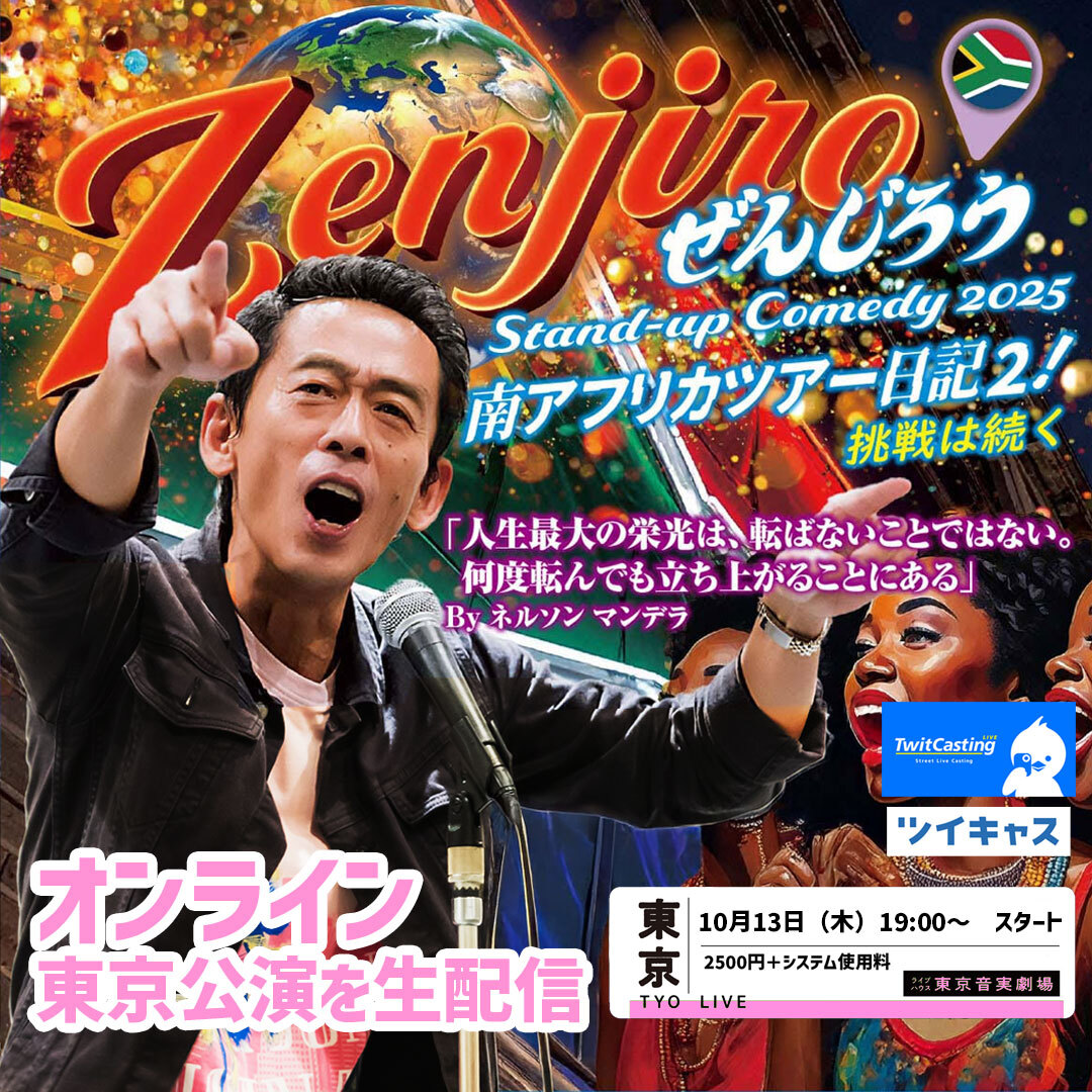 ぜんじろうさんの南アフリカツアー報告ライブ。東京公演の配信はまだ見れてませんが、大阪公演は生で見て大爆笑しました。 買って損は無いはずなのでフォロワーはみんな買って見てください。オススメ。 x.com/zenzenjiro/sta…