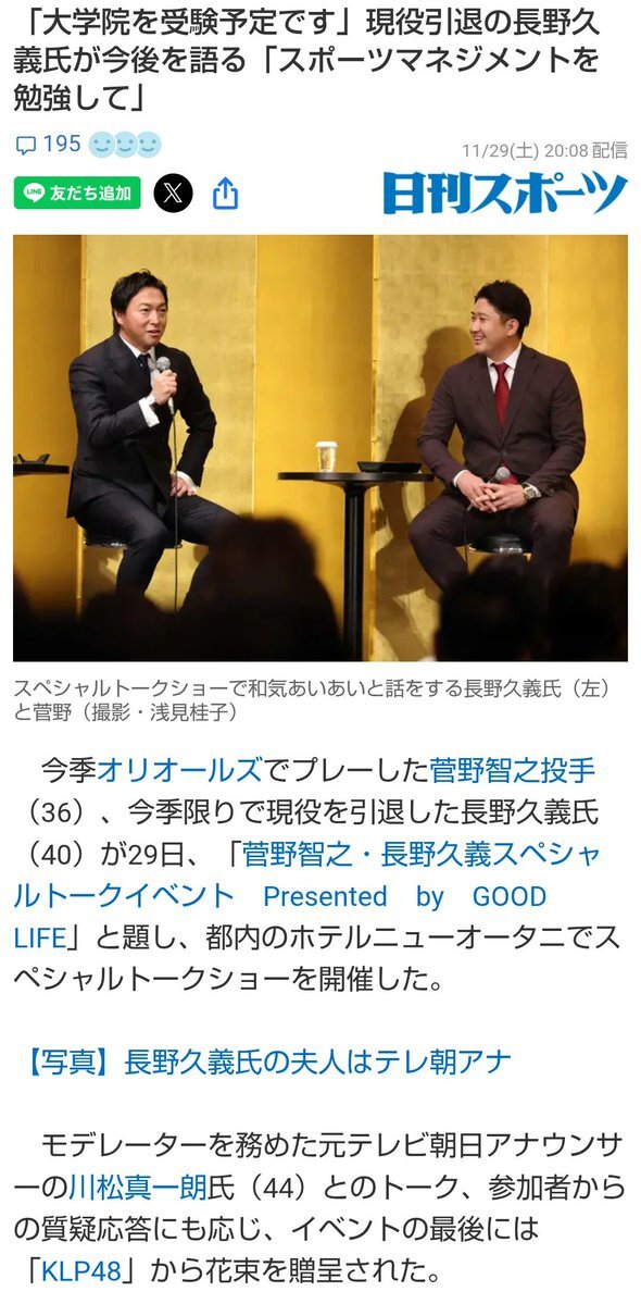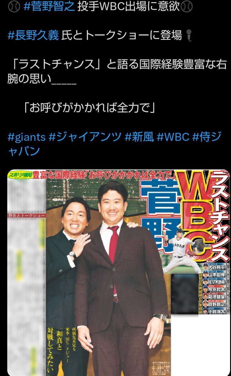 ✔️長野と菅野トークショー 長野期待→石塚裕惺内野手 菅野→WBC出場に意欲 ✔️DAIGO来季は必ず「GIB」ジャイアンツイズバック ✔️⚽水戸ホーリーホックJ1昇格 ✔️今夏甲子園出場・東大阪大柏原高27年以降募集を停止 ✔️有原航平 自由契約巨人も獲得調査 ✔️サンモニGファンフェス阿部監督への野次を放送🤔😓 pic.x.com/sv3nk79u9r