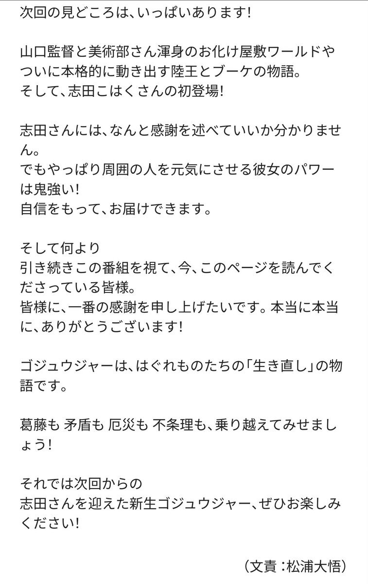 東映公式サイトより松浦Pのコメント。 苦労したのは皆分かっています。視聴者としても制作スタッフの方々と志田こはくさんには感謝しかありません……。 toei.co.jp/entertainment/… pic.x.com/t7oluiNv6v