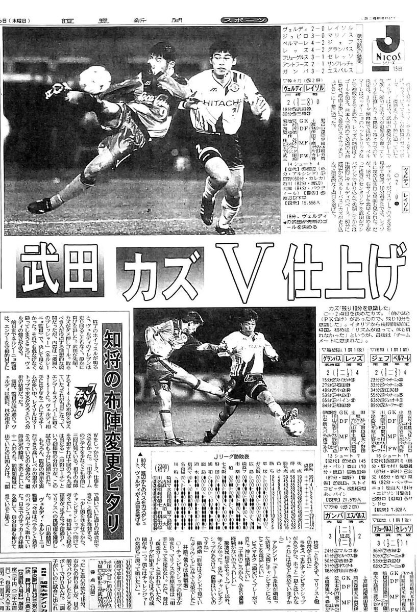 30年前の本日1995年11月15日、ヴェルディ川崎vs柏レイソル@等々力。 武田とカズのゴールでヴェルディ2-0で勝利。2nd.S優勝決定。2nd.Sは93年から3連覇。1st.S優勝のマリノスと年間王座をかけCSへ。 この頃になるとヴェルディ人気も一段落。ホームでの優勝決定マッチなのに満員にならなかった。 pic.x.com/lc3KbGkA7S
