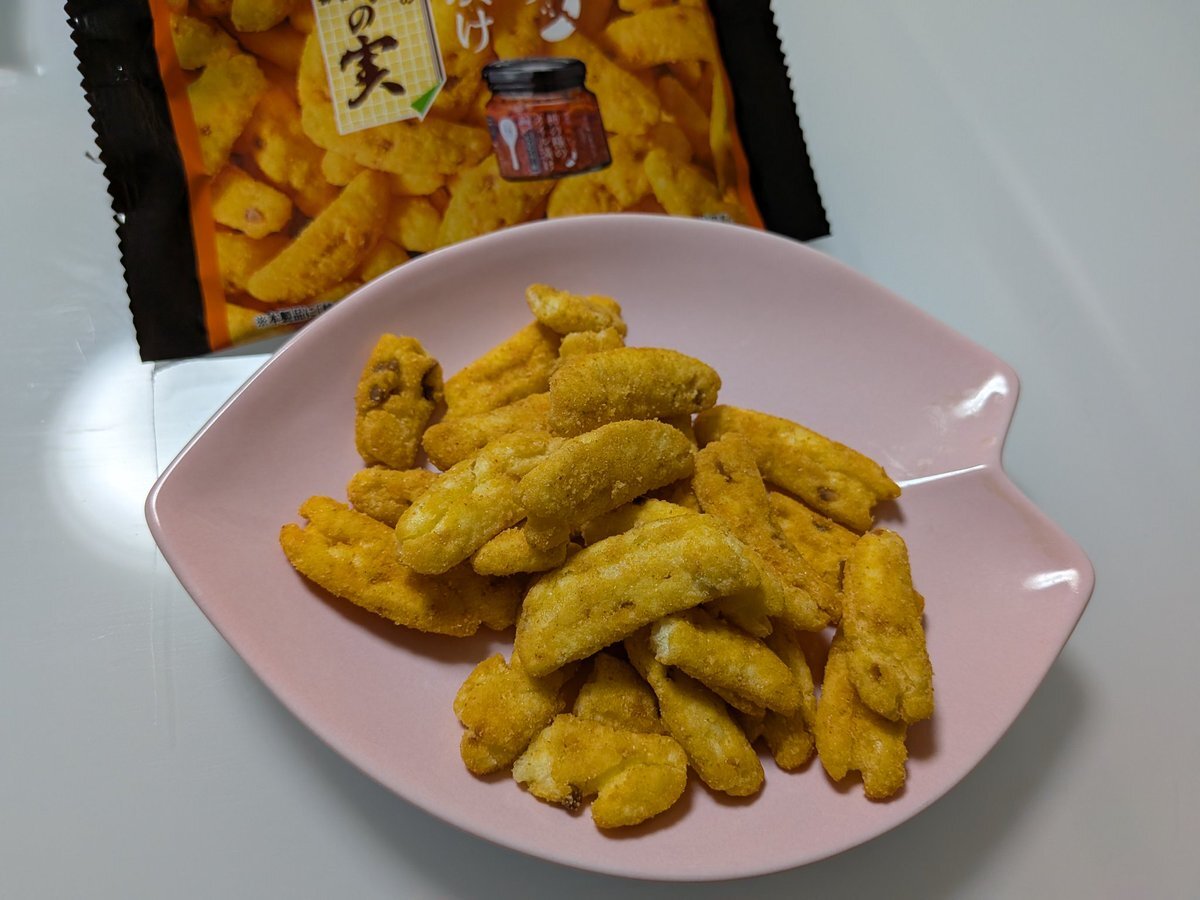 柿の種のオイル漬けにんにくラー油がお菓子になりました。 阿部幸の柿の実 近所のスーパーの新潟だらけの米菓コーナーに並んでいます。 pic.x.com/gEVjdgX3JN