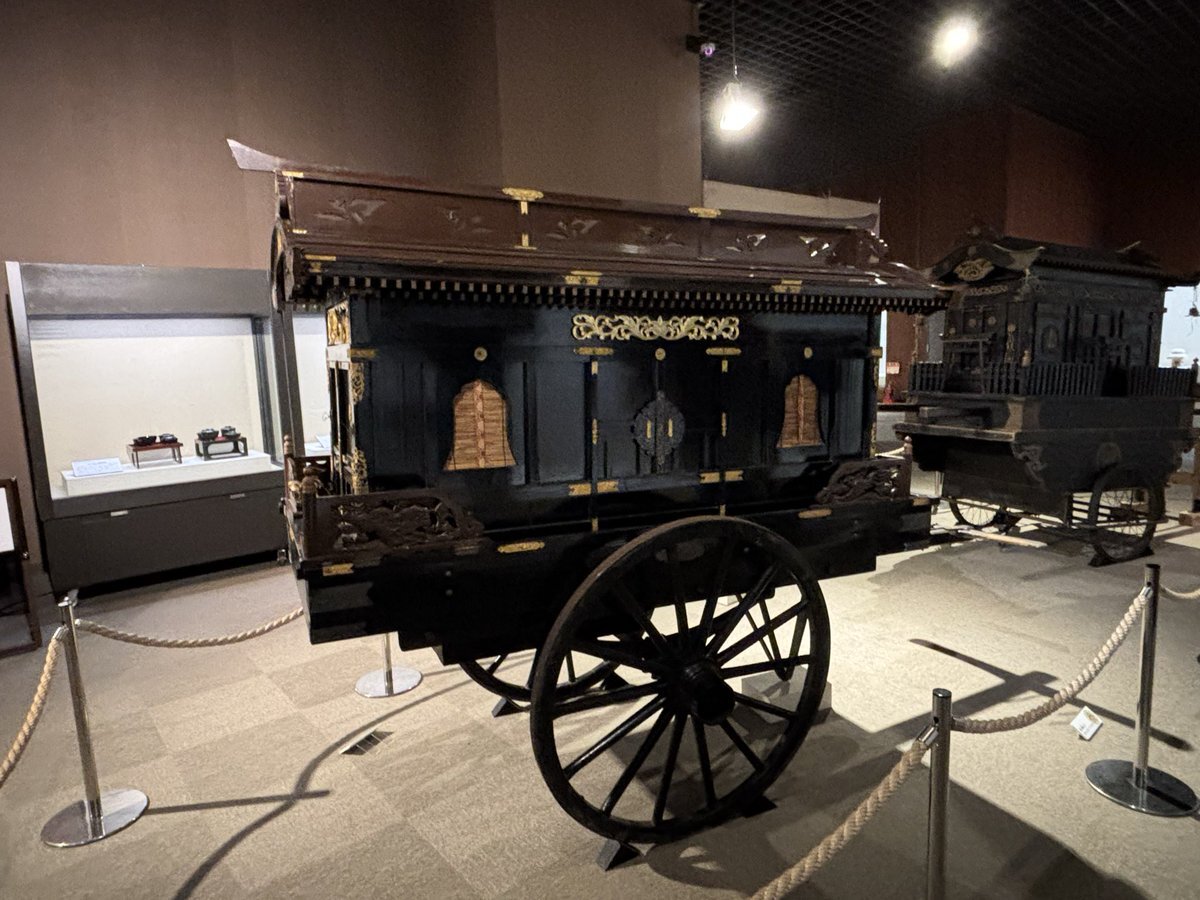 雷鳥トラベル栃木県立博物館企画展 大八車の霊柩車 と思いのほか小さくて 車の霊柩車とは運用方法が違うん 担げるようになってたりするん 伊豆の博物館で見た事有るけど 現存する数少ない貴重な資料だと思う。 pic.x.com/xfGY5wcEyX