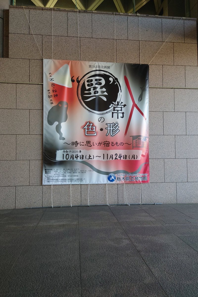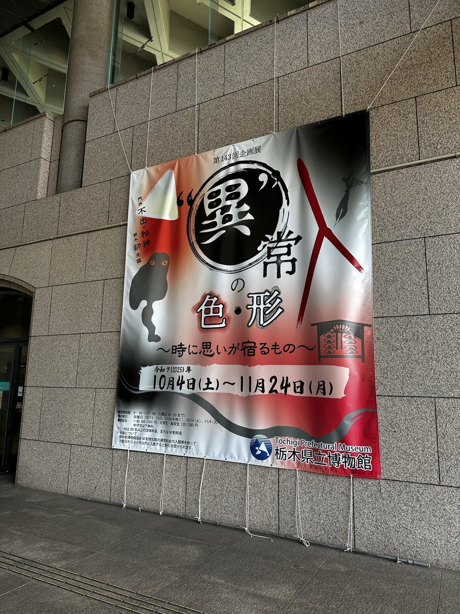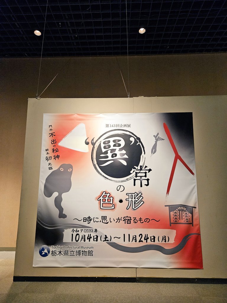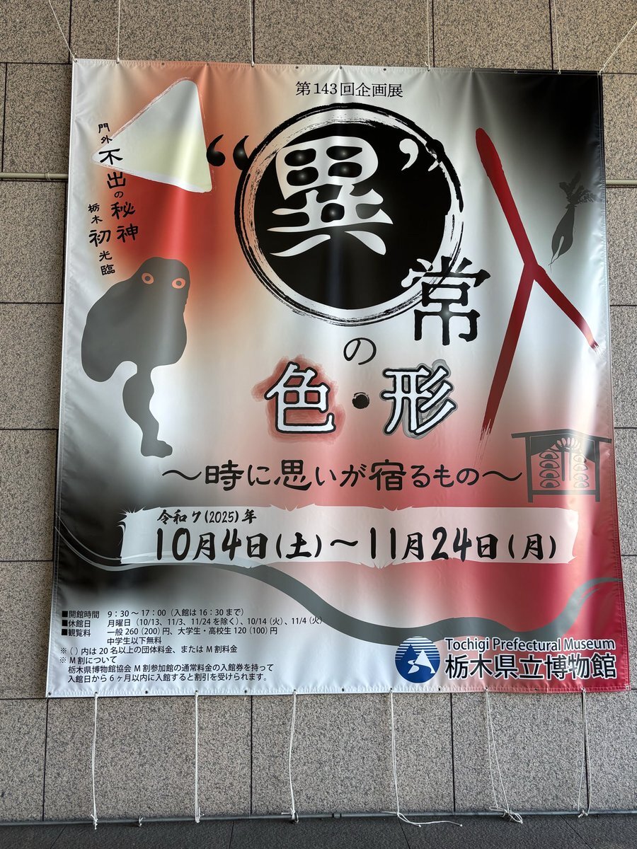 【そうなんだぁ~!県博!】 10月4日から第143回企画展『“異”常の色・形~時に思いが宿るもの~』が始まります。 玄関壁面には既に大きなバナーが掲げられ、展示室の準備も連日急ピッチで進められています。 大好評だった特別企画展『とちぎ戦後80年』の時同様、多くの方のご来館をお待ちしています。