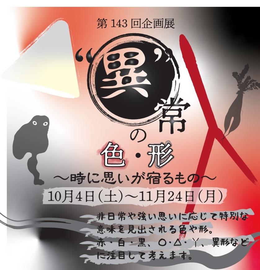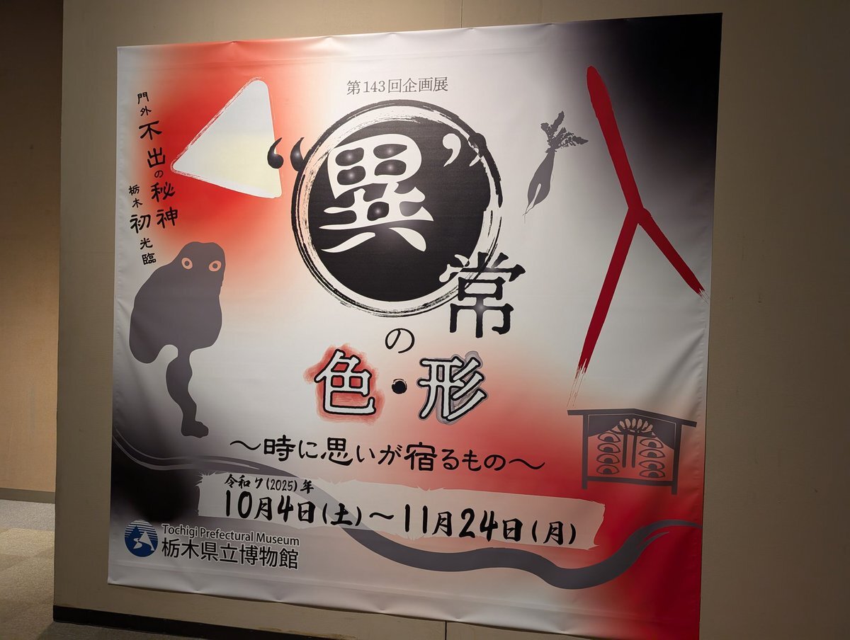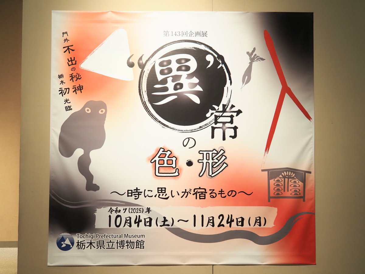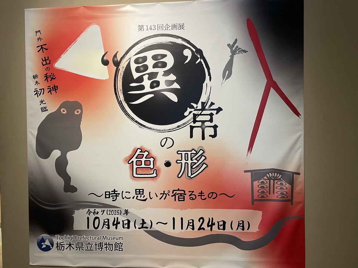 【そうなんだぁ~!県博!】 10月4日から第143回企画展『“異”常の色・形~時に思いが宿るもの~』が始まります。 玄関壁面には既に大きなバナーが掲げられ、展示室の準備も連日急ピッチで進められています。 大好評だった特別企画展『とちぎ戦後80年』の時同様、多くの方のご来館をお待ちしています。