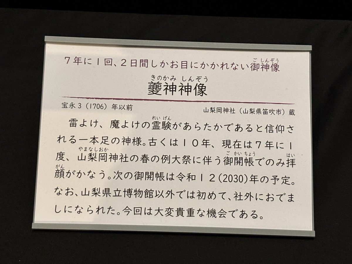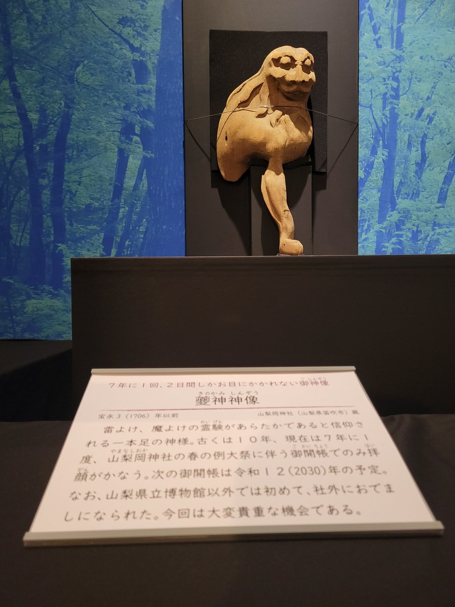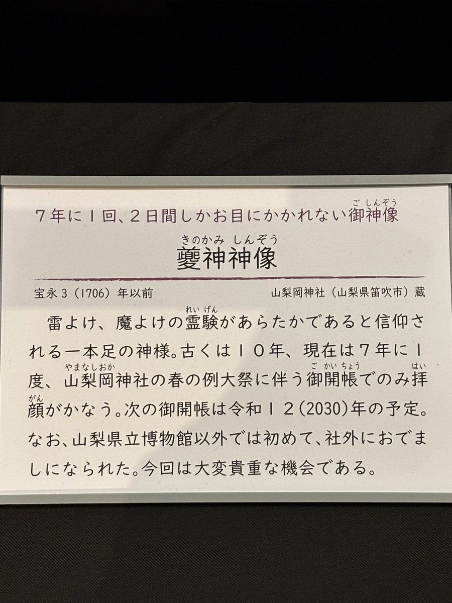 雷鳥トラベル栃木県立博物館 今回の企画展で滅多に見られない 山梨県笛吹市のご神像 7年に1回だけ山梨岡神社でご開帳される きのかみ神像 とても珍しい1本足の神様 妖怪や物怪の類では無いん。 pic.x.com/NKH0OGBlfy