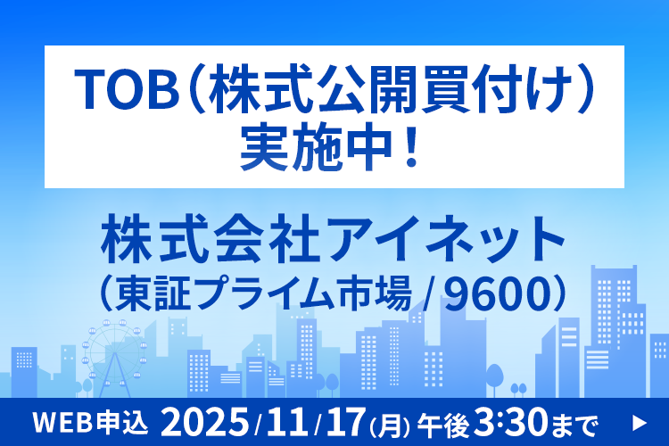 2025/11/17(月)午後3:30まで 株式会社アイネット(東証プライム市場/9600)公開買付け実施中! 公開買付価格:1株につき2,530円 詳細はこちら sbisec.co.jp/ETGate/?_Contr… pic.x.com/0ps8Qvvdwx