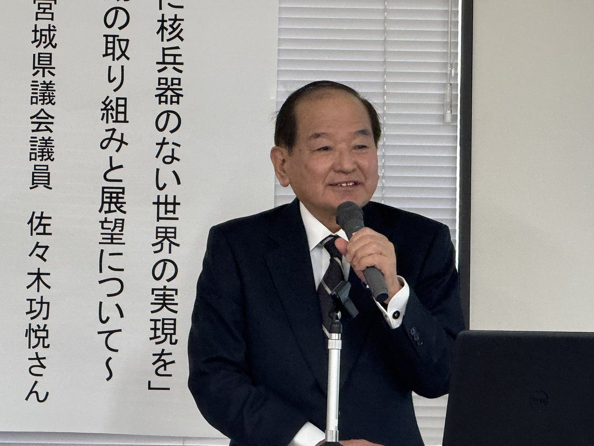 昨日11月22日は第4回総会でした。 前段の記念講演は、非核の政府をつくる会会常任世話人でもある佐々木功悦県議にお願いしました。その実績にびっくり‼️県内外の非核平和都市宣言を実現させたのも佐々木県議でした‼️ #核兵器廃絶 #核兵器禁止条約に参加する日本に pic.x.com/f7uOmI9dWX