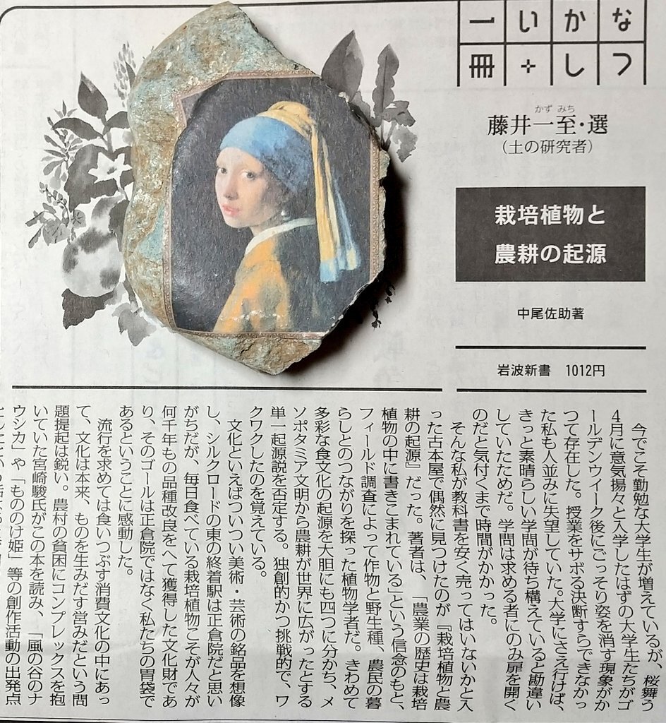 @VirtualSoil 著名人が心に残る本を紹介する 「なつかしい一冊」は 土の研究者の #藤井一至 さんが 『栽培植物と農耕の起源』 (中尾佐助著・岩波新書) を取り上げます。 pic.x.com/xpt144TAym x.com/mainichi_books…