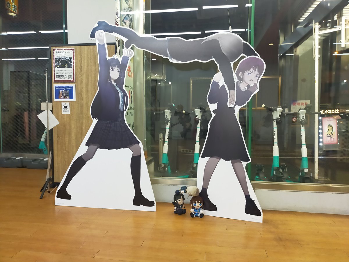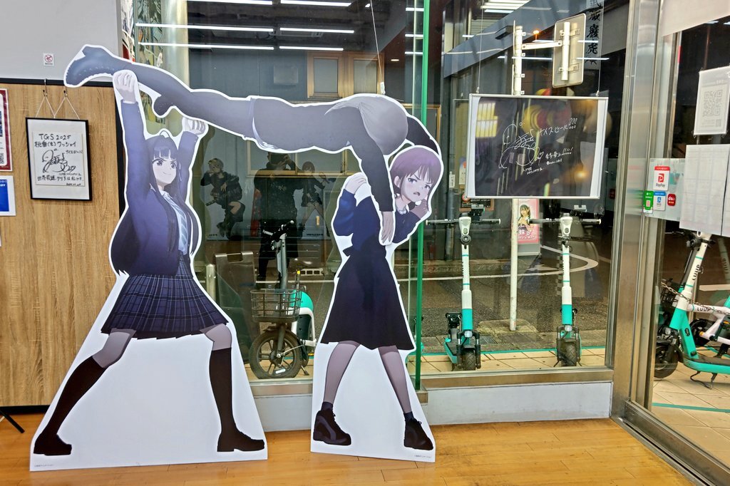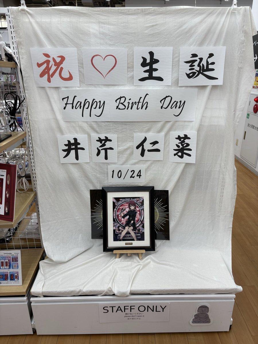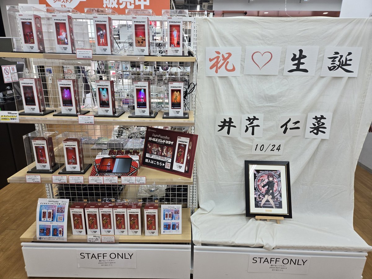 オノデン一階のガルクラポップアップ! 仁菜のバースデー展示が古風w仁菜っぽさはあっていいかもw 桃ワショのスタンディパネル初めて見たけど面白いwガルクラ展でアクスタ買っとけば良かったかもw #ガルクラ #オノデン pic.x.com/Buwq6Mj0j4