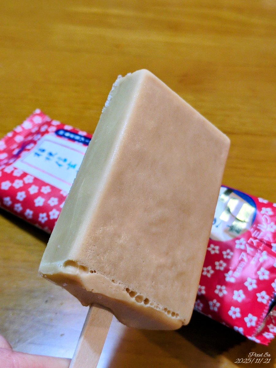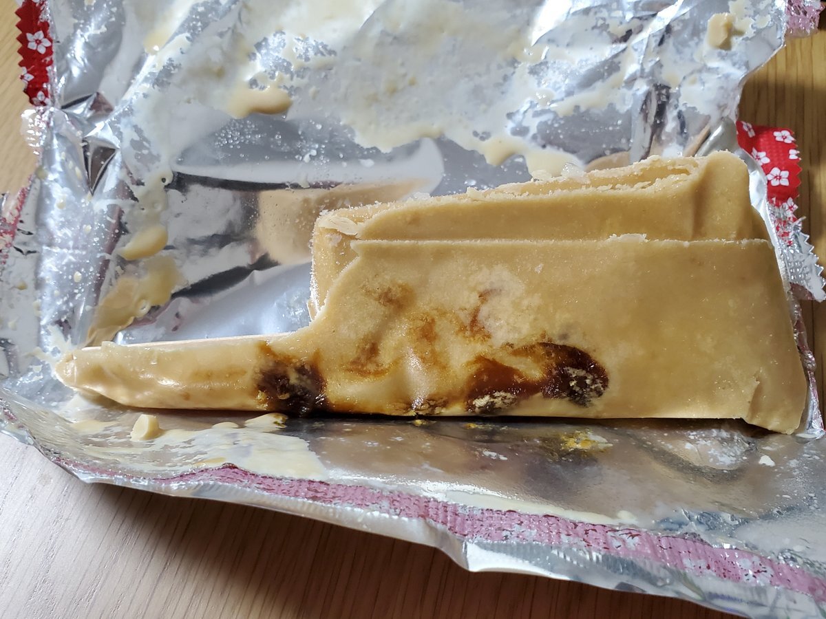 これも11/16(日)に買ってきた 赤城乳業 桔梗信玄餅アイスバー こちらは気付いたらラス1だったので😅 でも帰宅までに少し時間かかってしまって、結構とけてしまい…… 帰宅後冷凍庫に入れておいたけど、昨晩見たら明らかに形が変……😓 開けて食べました😅 やはりおいしいですわ😋 pic.x.com/sNpxgzOw9e x.com/Akino_R11NOR/s…