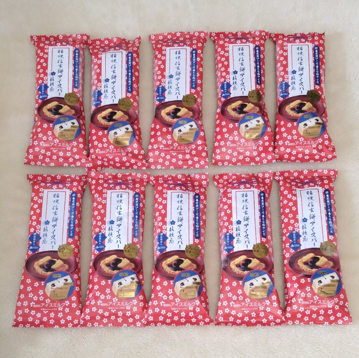 赤城乳業さんから「桔梗信玄餅アイスバーとオリジナルグッズ届きました。味は信玄餅でした。とても美味しゅうございました。 #赤城乳業 #信玄餅 pic.x.com/GbTgs2jtMM