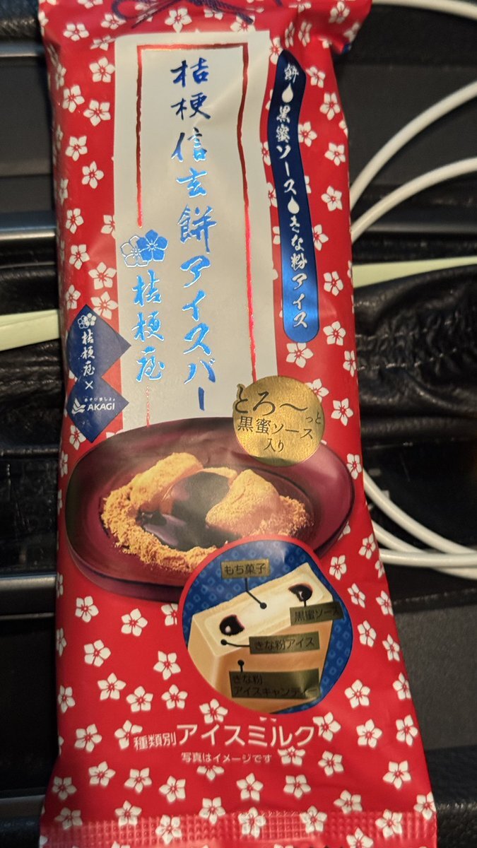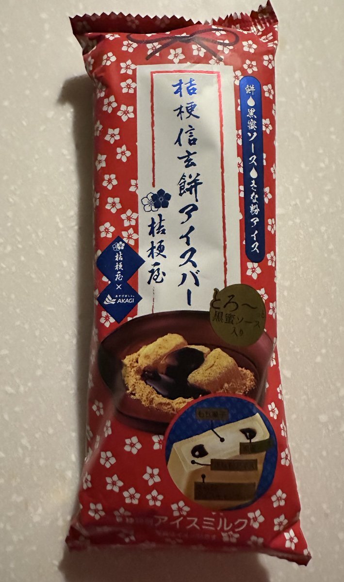 今日のアイスー。 桔梗信玄餅アイスバー。 何度食べても美味しいきな粉アイス。 ストックしたい。 pic.x.com/SfYKl4RyoB