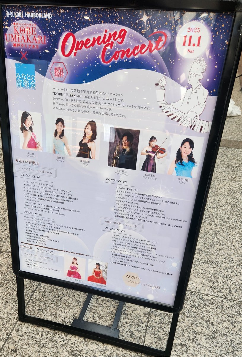 神戸ハーバーランド UMIAKARI✕#みなとの音楽会 オープニングコンサート終演! ありがとうございました! わざわざお越しくださった方も、通りすがりの方も沢山の方に楽しんでもらえて嬉しいです! またお会いしましょう🙌❄ フルート樋口藍 ピアノ亀岡沙織 ソプラノ西尾薫 #ソプラノ歌手西尾薫 pic.x.com/H9kXAWYtU3
