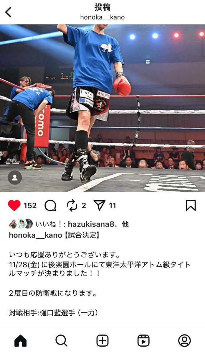 チケット 本日締切 🎫 11/28(金) 後楽園ホール OPBF東洋太平洋アトム級タイトルマッチ 狩野ほのか(TEAM10COUNT) vs 樋口藍(一力) honokakano.boxing-ticket.com ➡️ チケット購入は選手から! 🥊 ボクシングチケットドットコム pic.x.com/JnJmSmJFST