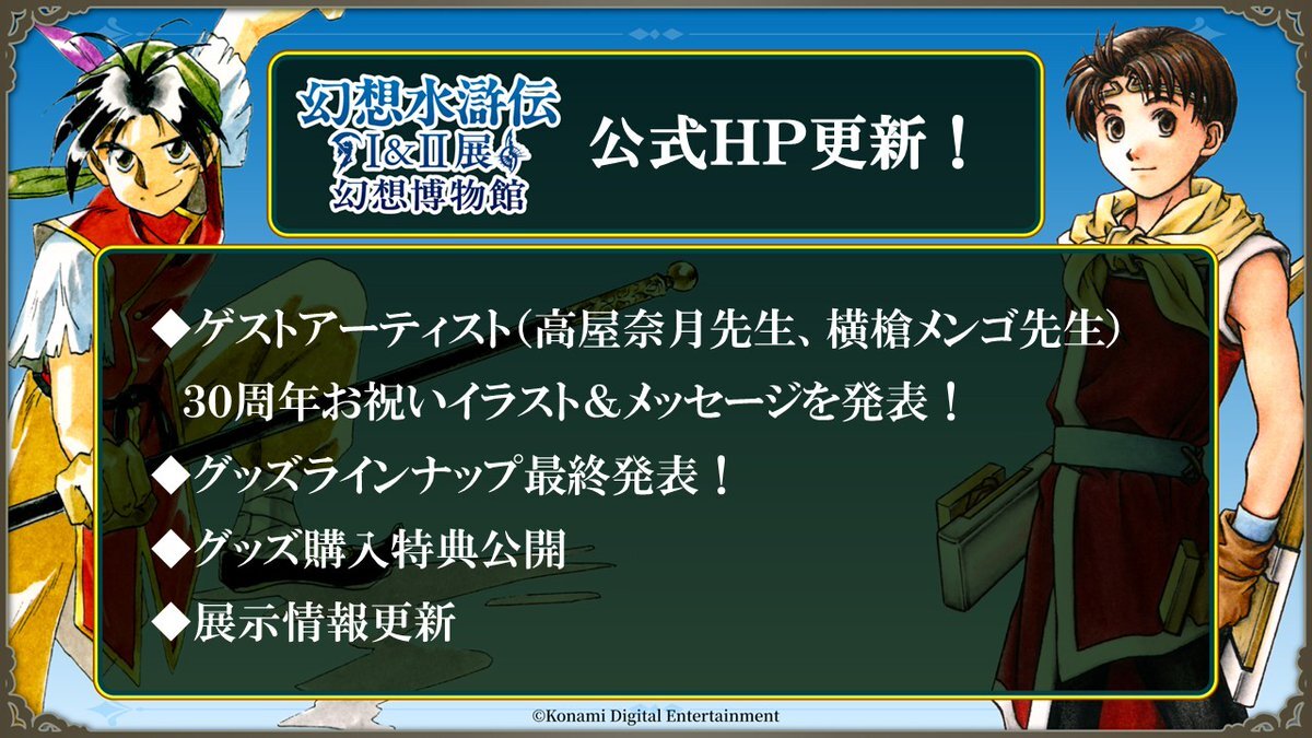 ⭐️ #幻水展 公式HP更新 ・ゲストアーティストお祝いイラスト&メッセージ発表! ・グッズラインナップ最終発表! ・グッズ購入特典公開 ・展示情報更新 ⚠️当日の状況によりグッズ購入に長時間お並びいただく場合がございます ⚠️その他注意事項についても公式HPをご確認ください