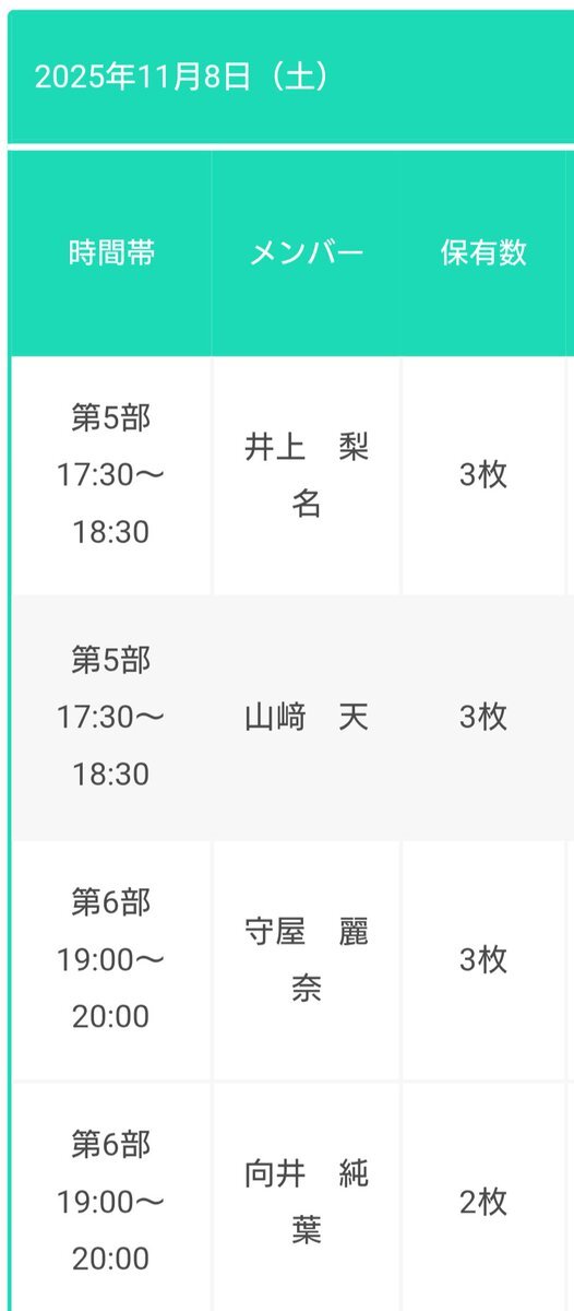 11/8(土) 櫻坂13thシングル💿️『Unhappy birthday構文』発売記念ミーグリ 5部 山﨑天さん 井上梨名さん 6部 守屋麗奈さん(7thぶり!) 向井純葉さん に参加します #櫻坂46_UnhappyBD構文 #櫻坂46 #ミーグリ pic.x.com/A0Q69p4NIU